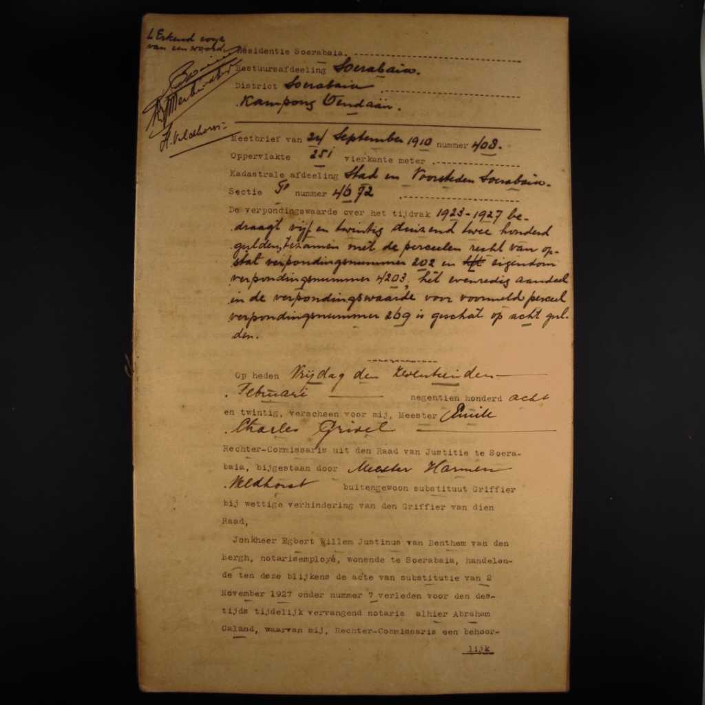 Distrik Surabaya Kampung Gendaan tanggal 20 September 1910 luas 1 meter persegi Divisi