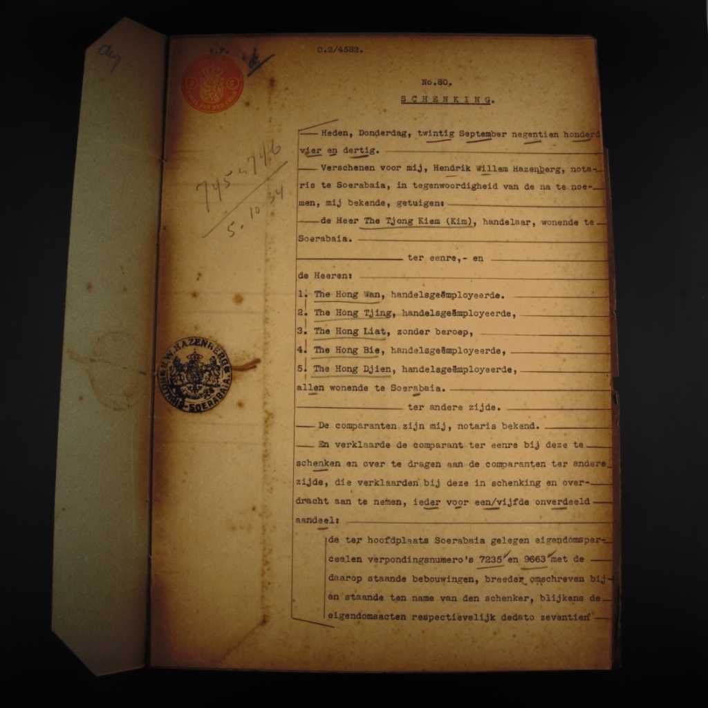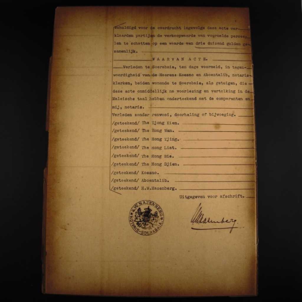 Hadir di hadapan saya Hendrik Willem Hazenberg, Notaris di Surabaya, dengan disaksikan saksi