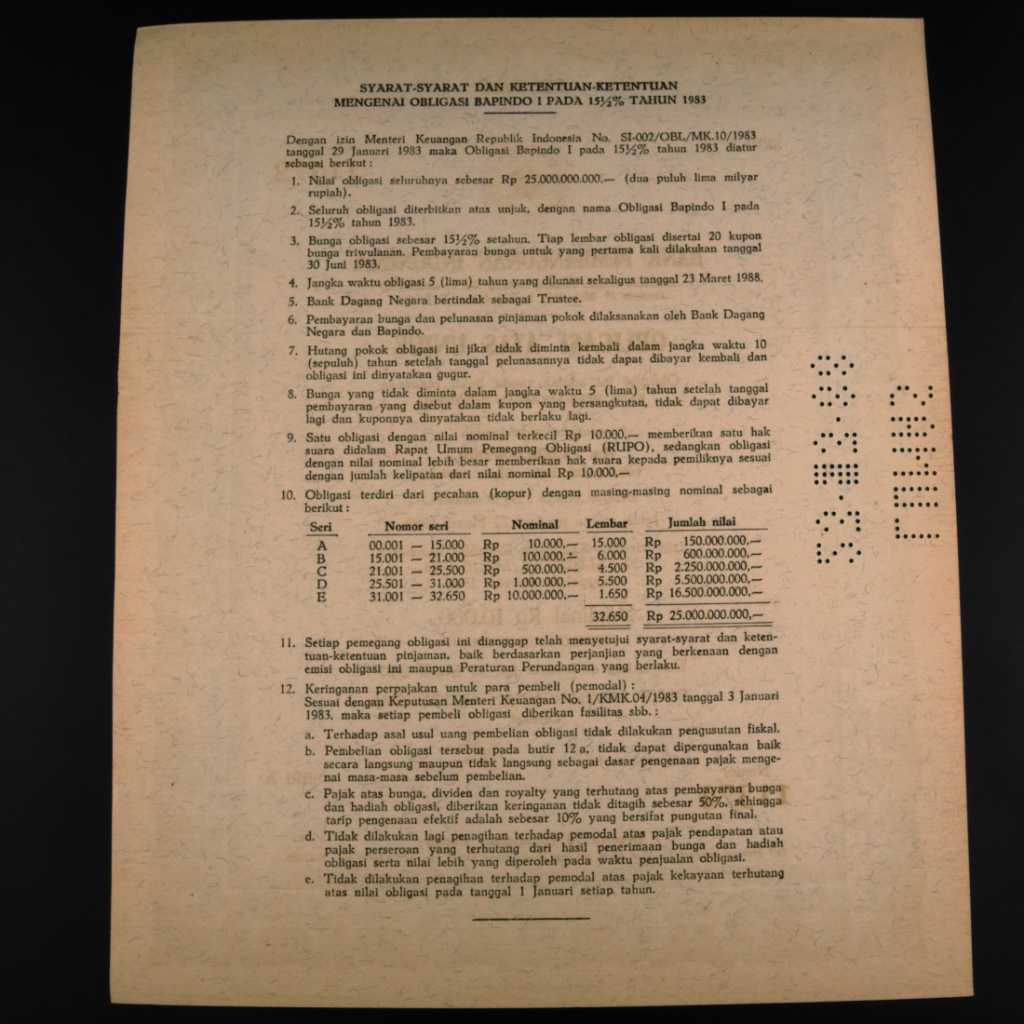 Diterbitkan di Jakarta 23 Maret 1983Dicetak 15.000 lembar untuk investasi 10.000 rupiahDOC-10
