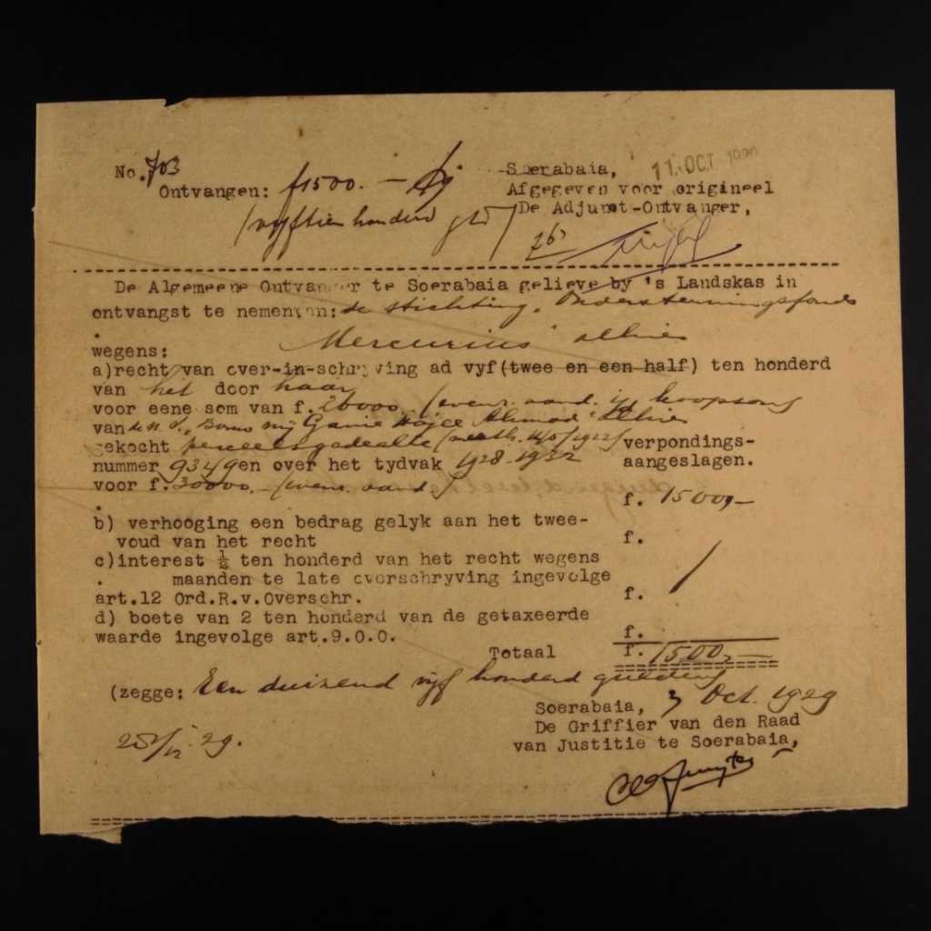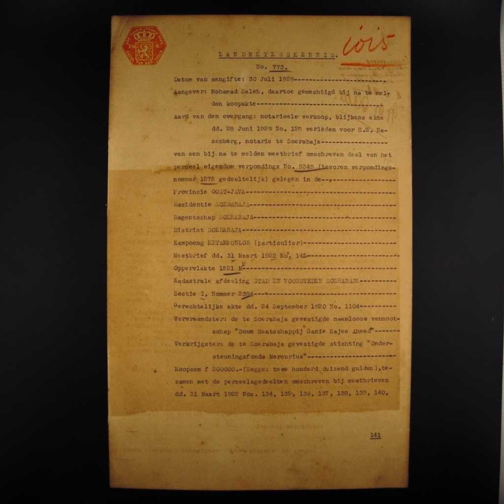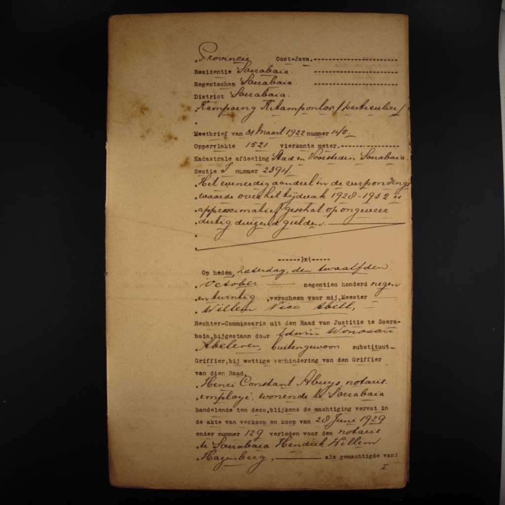 hh. 28 Juni 1929 No. 120 lewat untuk H.W. Hazenberg, notaris di Surabaya