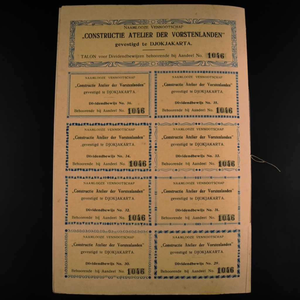 Diterbitkan di Yogyakarta 14 Agustus 1926Dicetak 1200 lembar untuk investasi 600.000 guldenSetiap saham bernilai 500 gulden