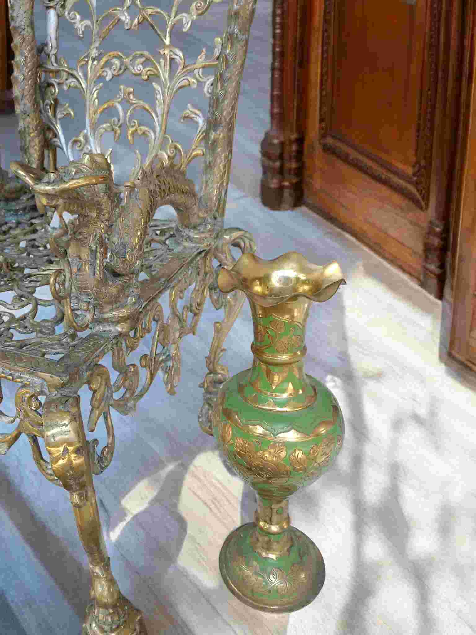 Kursi Antik Motif Naga & Vas Bunga Kuningan