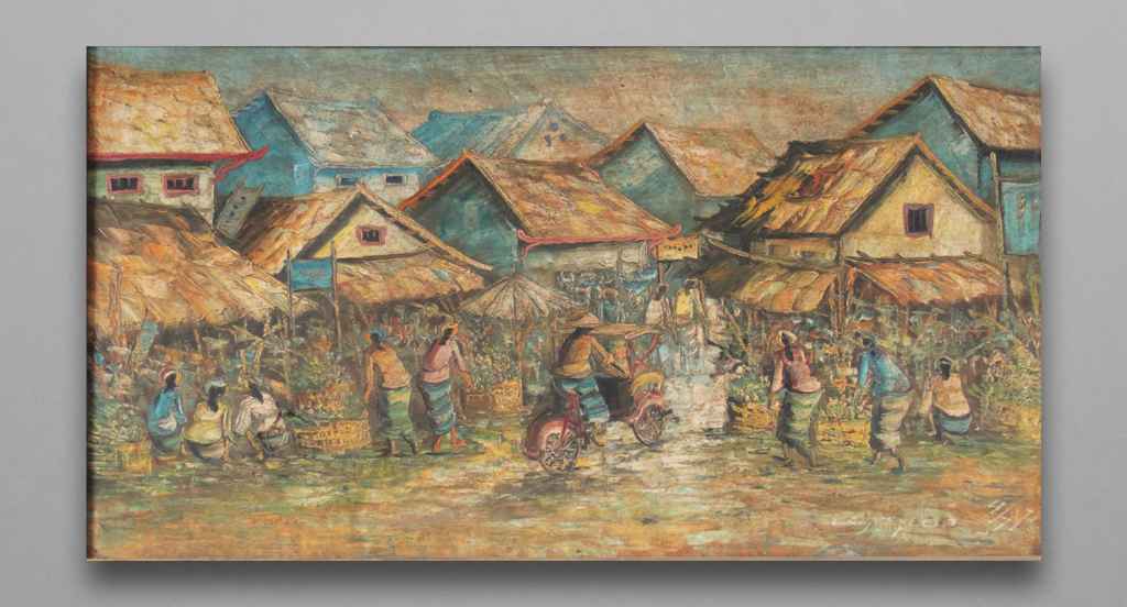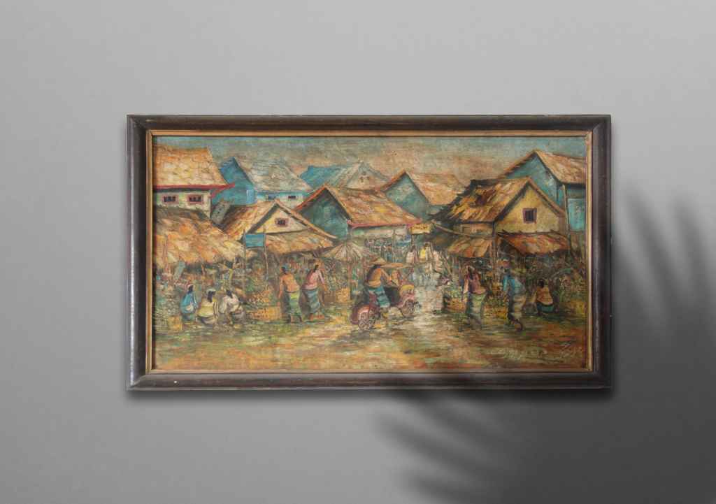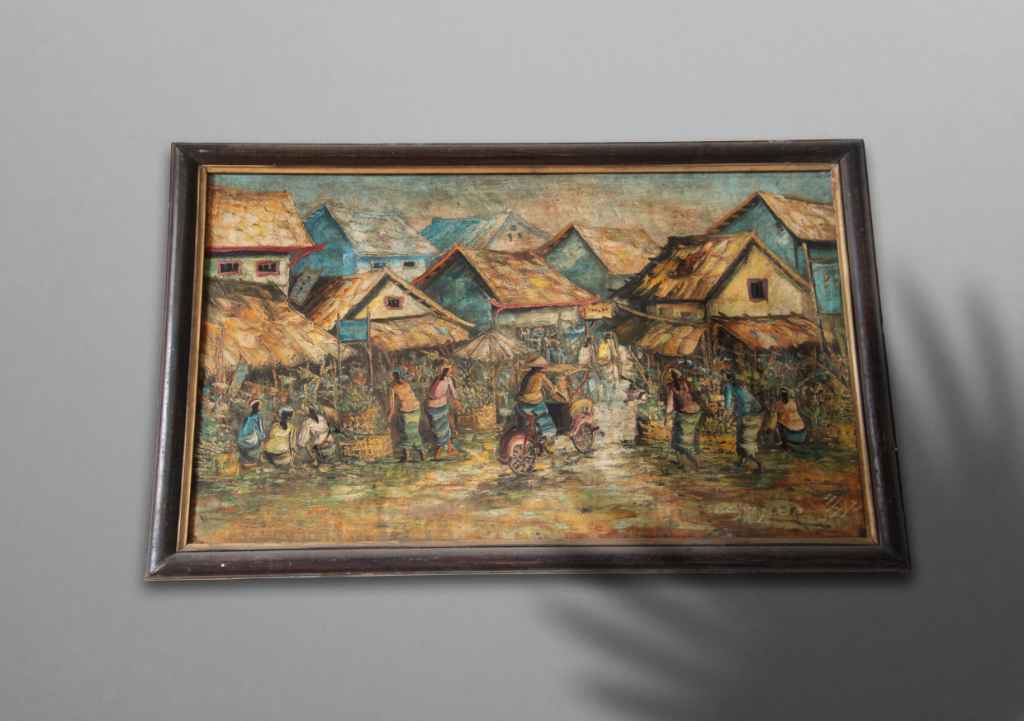LUKISAN SUASANA PASAR ORANG NAIK BECAK