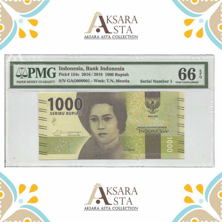 Low Number #000001 Rp 1000 Uang Indonesia Th 2016 PMG 66 EPQ