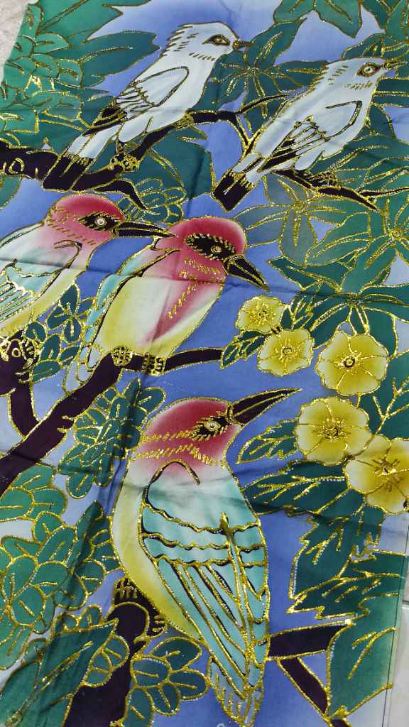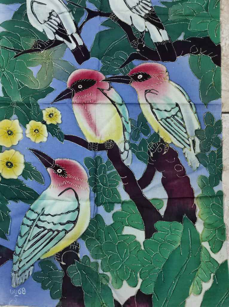 Kami menawarkan lukisan tangan menggunakan bahan pewarna dari batik.