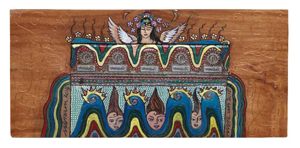19 x 39.5 cm, Carving, Acrylic & Oil on Wood
