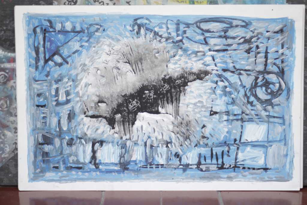 Lukisan akrilik ,tinta diatas kertas ( Dinding Kota )