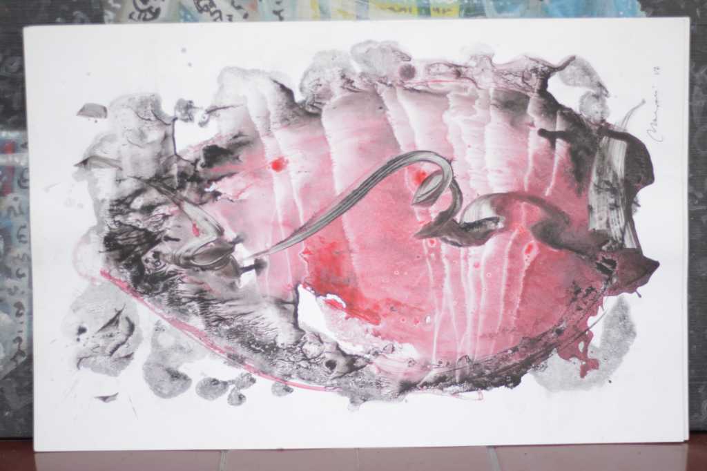Lukisan akrilik ,tinta diatas kertas ( Kasmaran I )