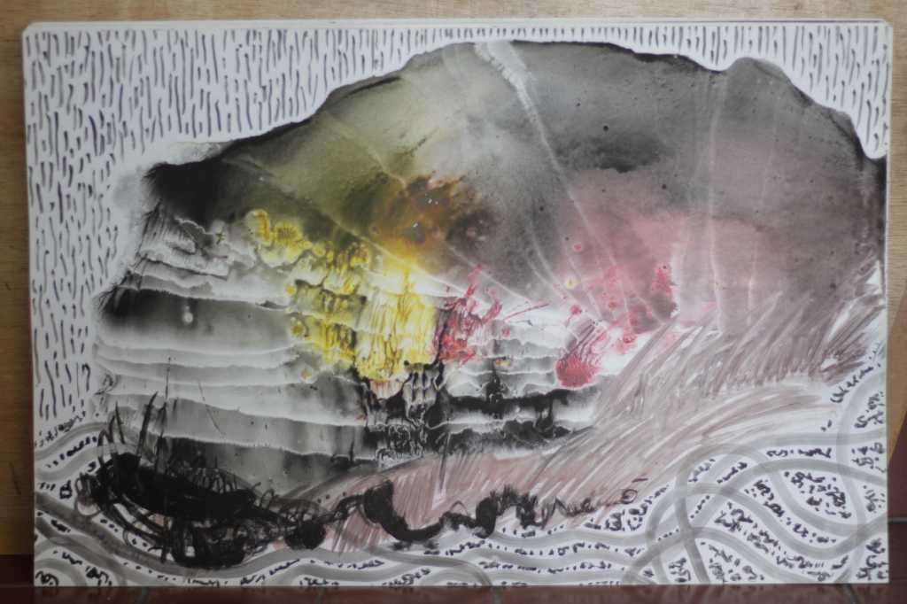 Lukisan akrilik ,tinta diatas kertas ( Kedalaman Alam )