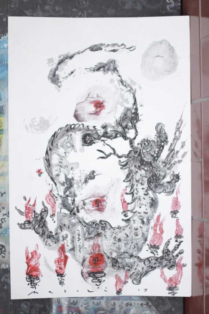 Lukisan akrilik ,tinta diatas kertas ( Naga )