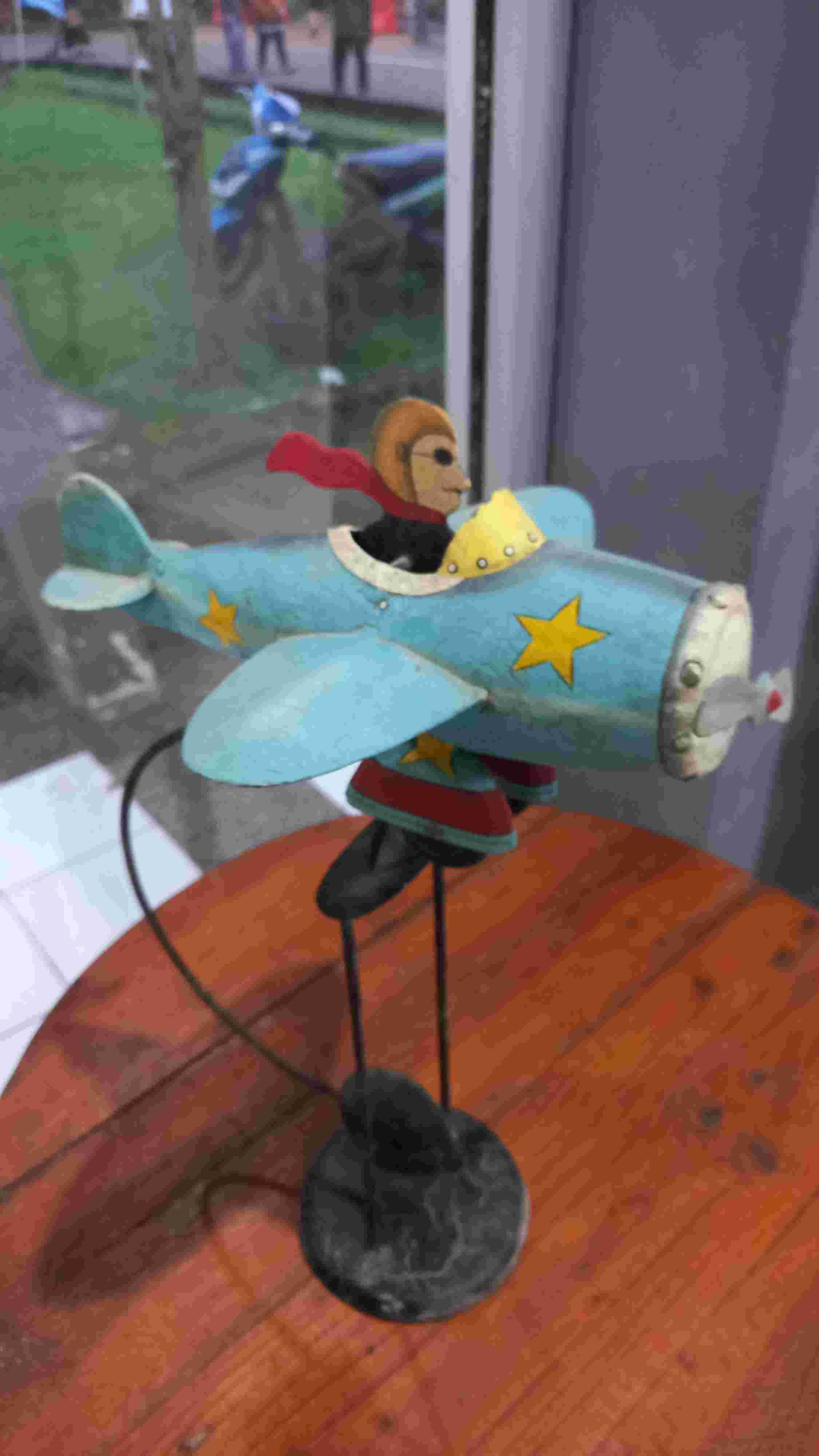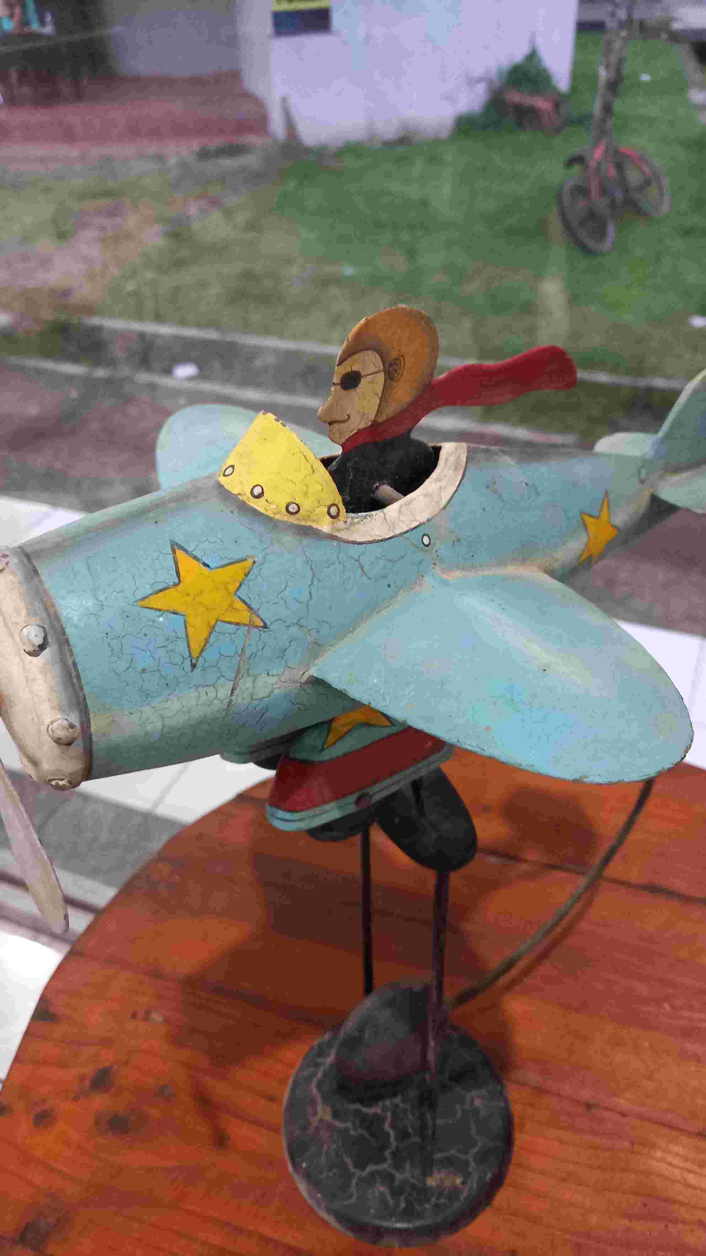 Antik Tin Toys Wind Up Curtiss Airplane Biplane Fighter NOS + Kardus