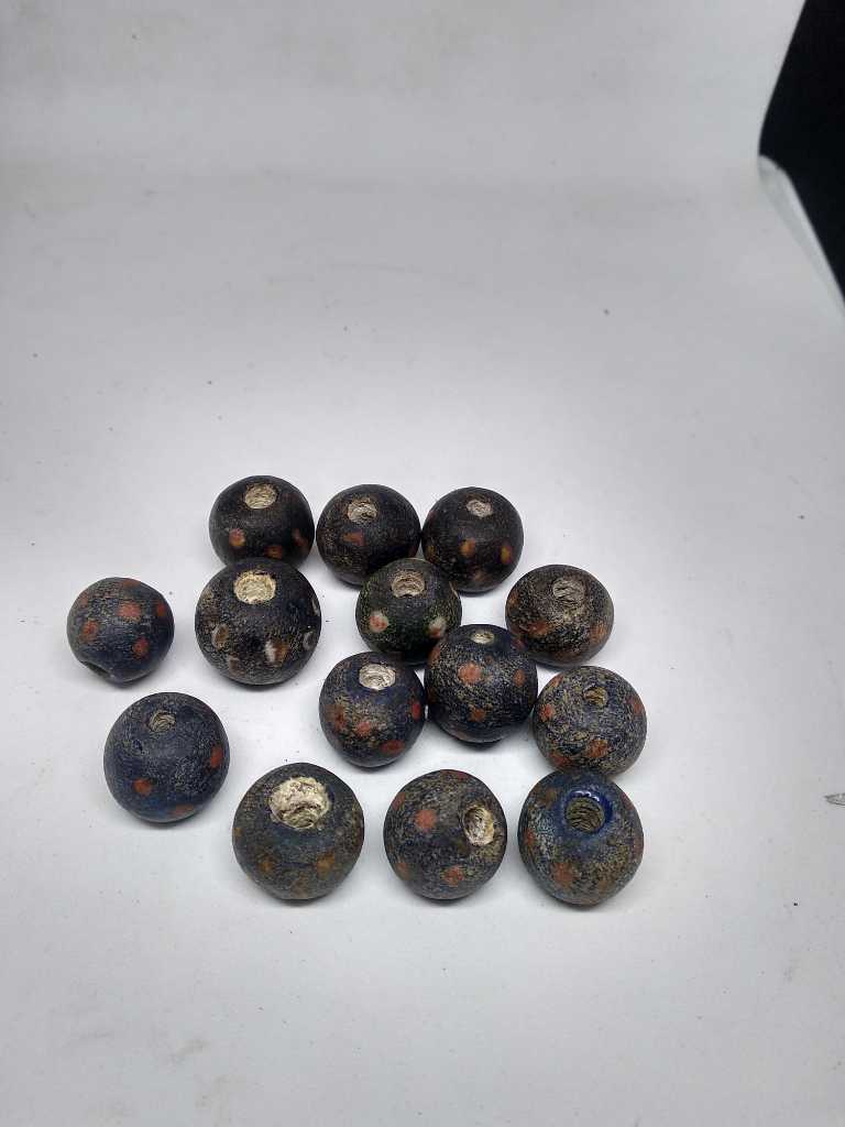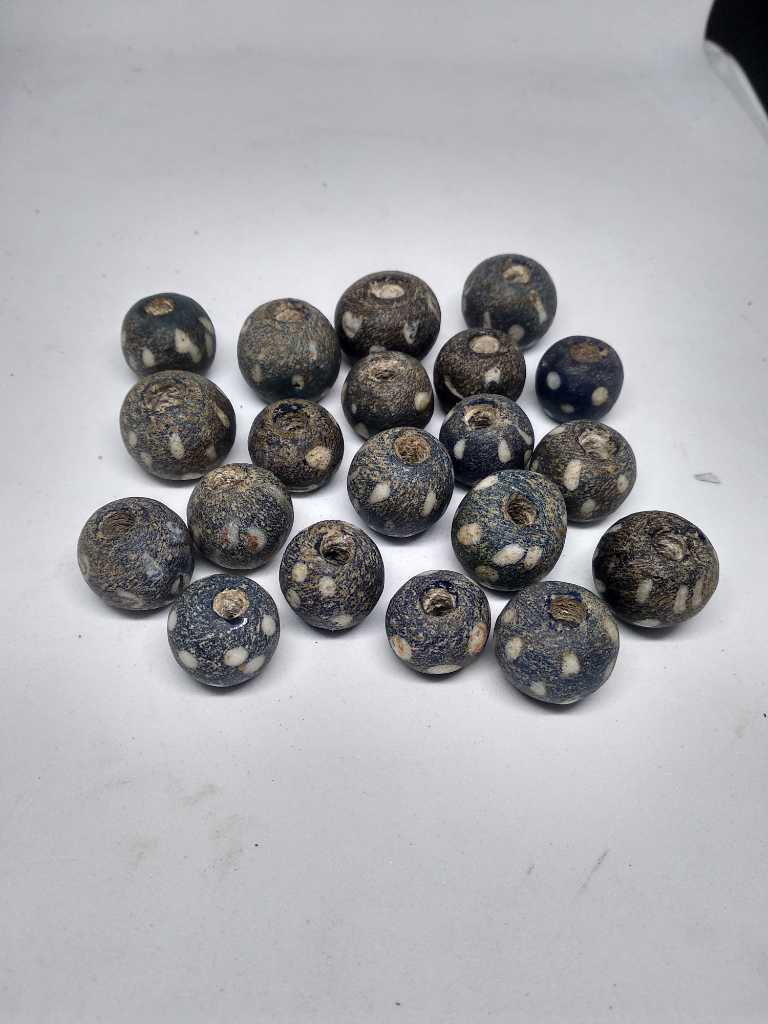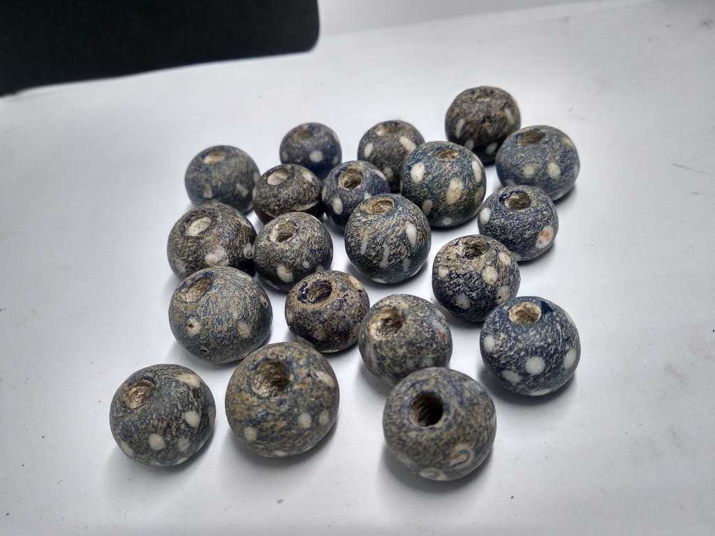 Manik Kaca (Glass beads) Kuno Warna Biru Putih.