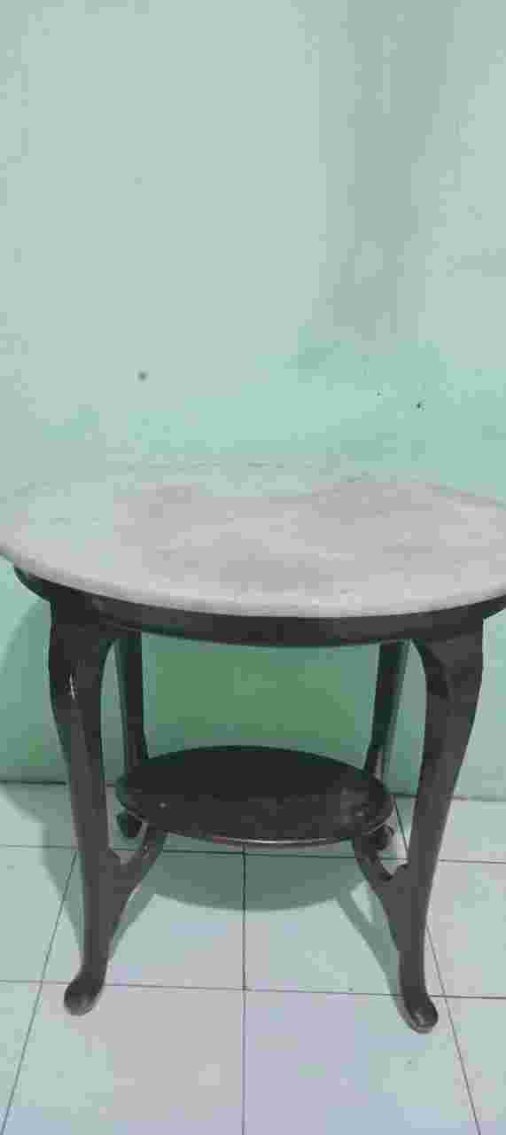 Meja marmer antik dari jaman Batavia, produk Italy dengan kaki meja dari kayu jati asli Berusia sekitar kurang lebih 200 tahun dan dapat dibuktikan ke otentik an dan ke asli nya