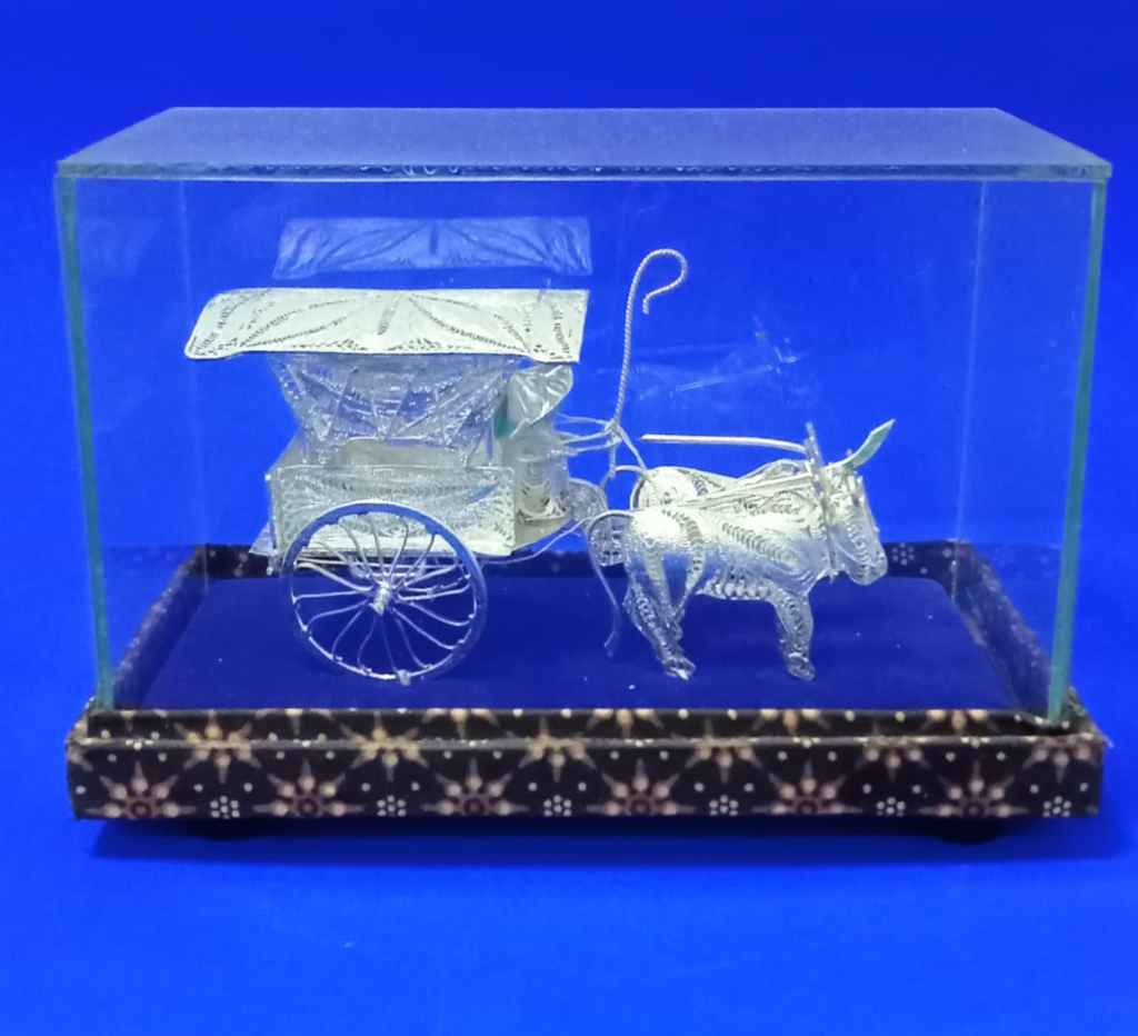 Miniatur Gerobak Sapi Bahan Tembaga Dan Perak