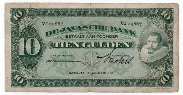 Netherlands Indies 10 Gulden Coen Tahun 1931 BL 58