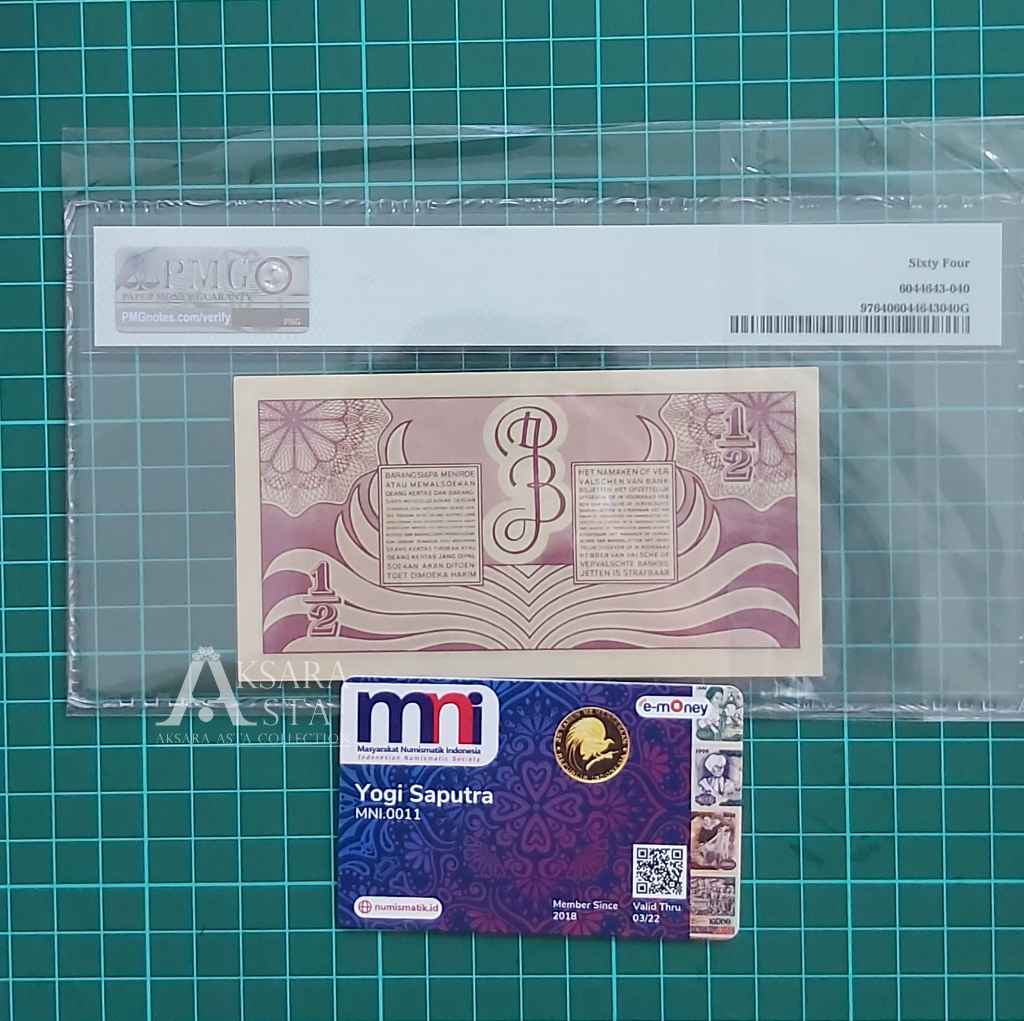 Nama barang :  Netherlands Indies, Javasche Bank 1/2 Gulden th 1948 PMG 64