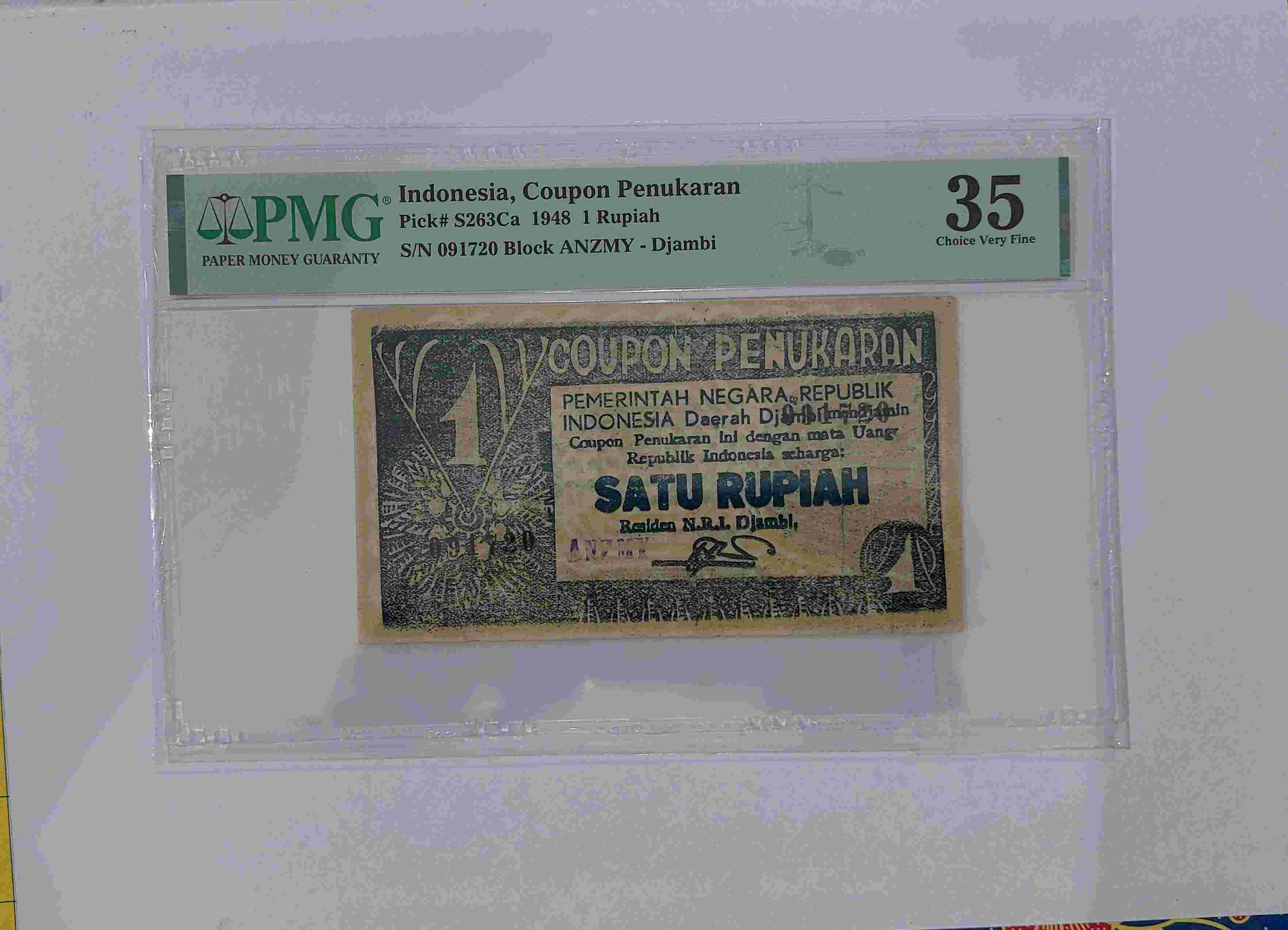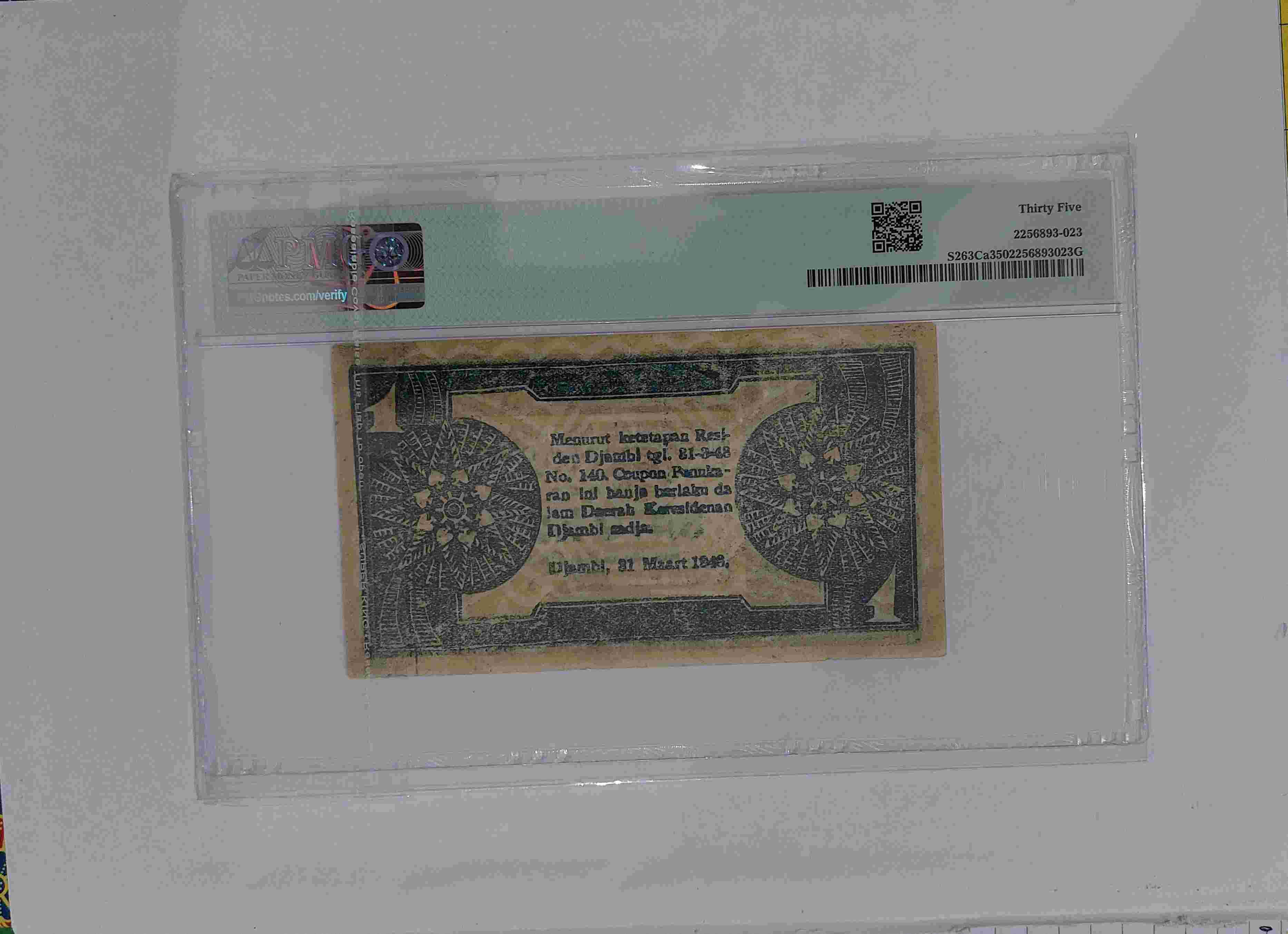Orida Djambi 1 Rupiah 1948 Hitam PMG 35 Tanpa Catatan