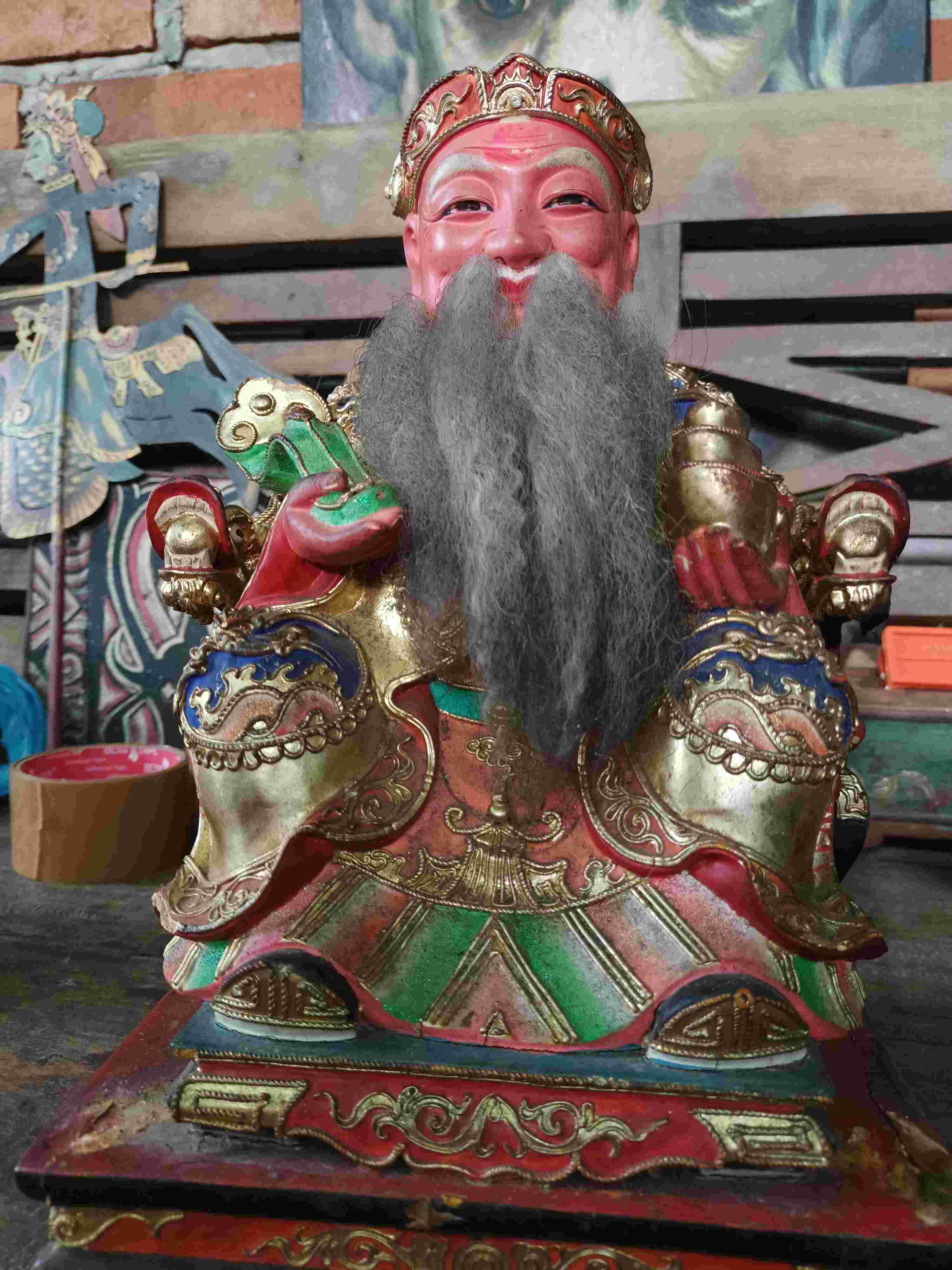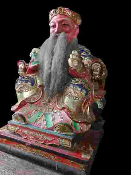 Patung Cina Lawasan Patung Cina kemakmuran Bahan Kayu Lawas Tinggi 30 cm , lebar 20 cm