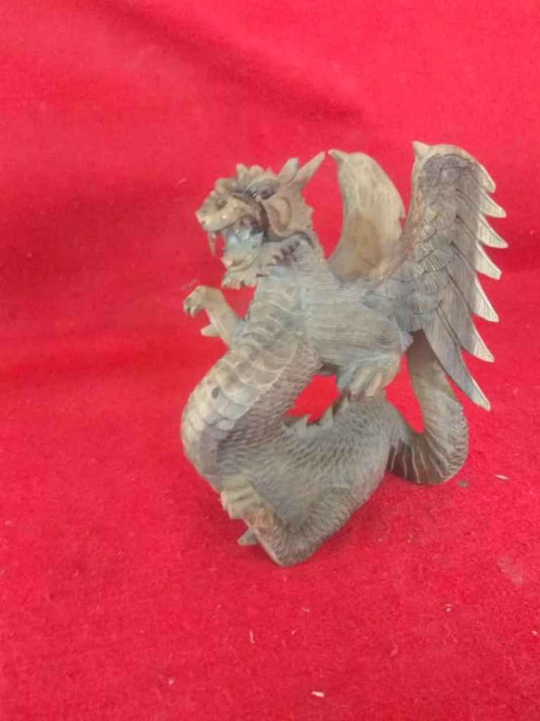 Patung naga bahn dari kayu. Tinggi 24cm .minus ada yg di lem