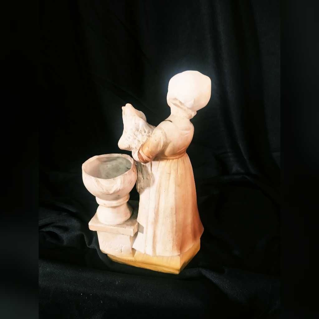 Patung Eropa Gadis Membawa Bunga Original Kuno
