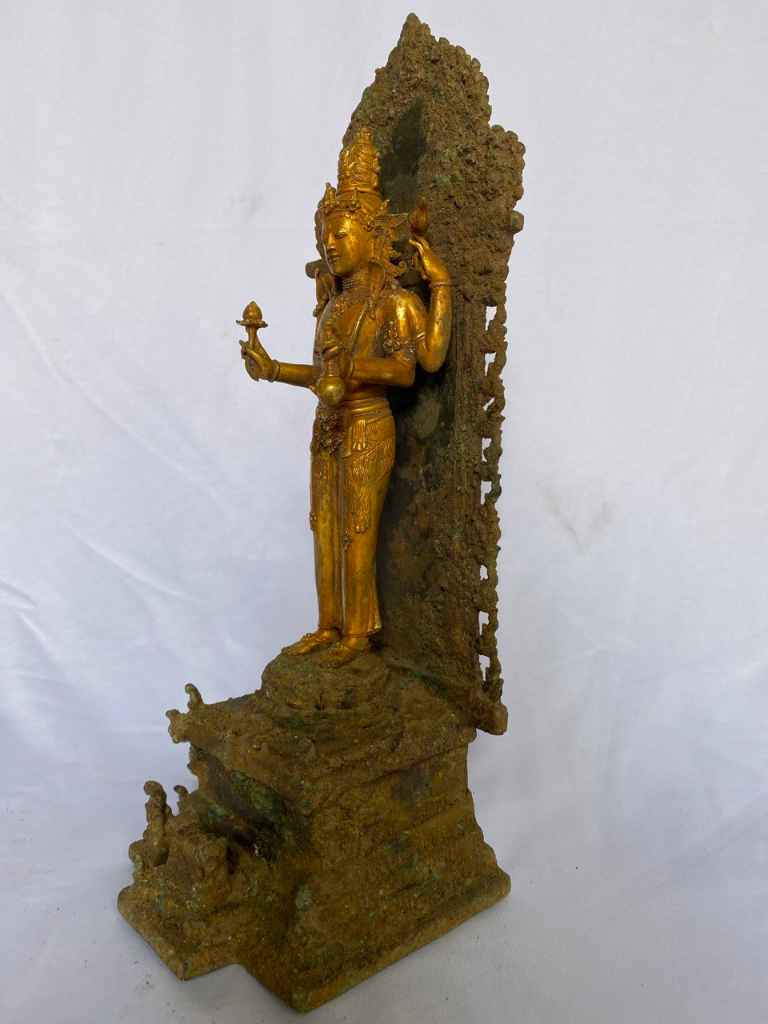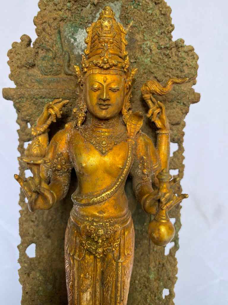 Patung 1 Dewa Berdiri 4 Tangan Bahan dari perunggu lapis emas (PD 0004)