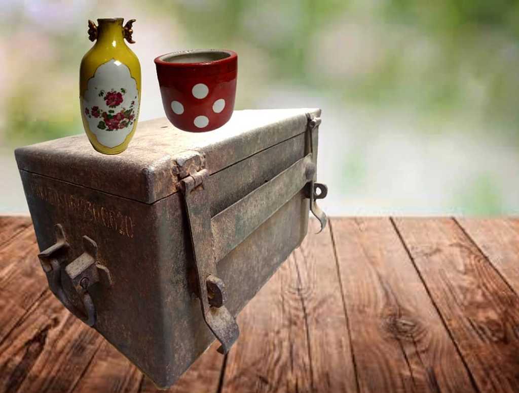 Peti besi antik.Size: T.21,5 P.43 L.31.Material: besi.Periode: 1930-1950.