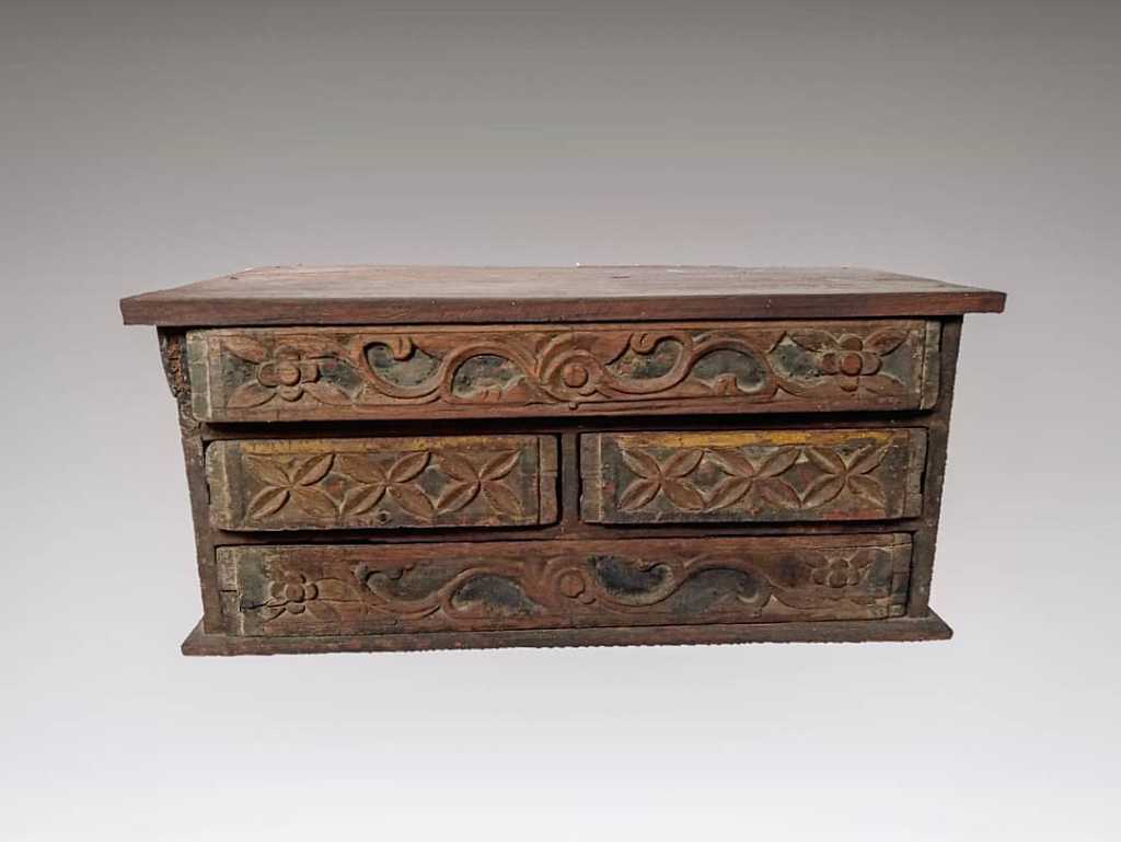 Peti ukir kuno.Material: kayu jati.Ukuran: 36*13*16 cm.