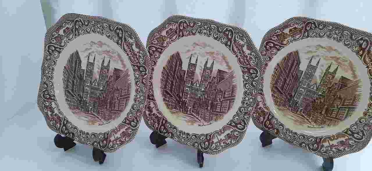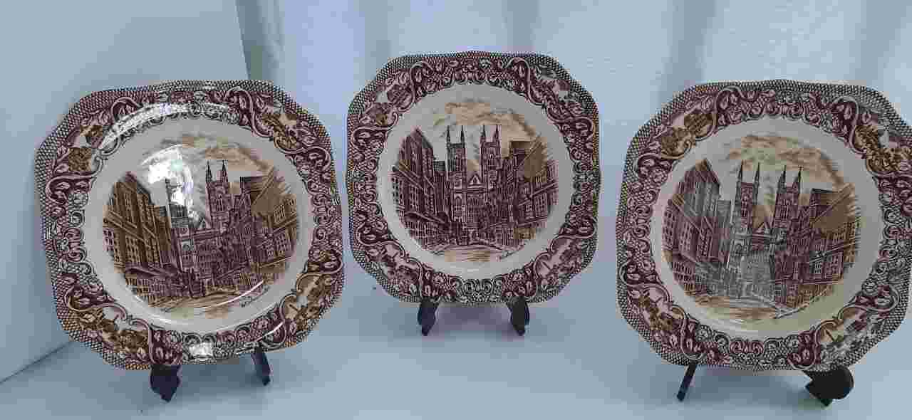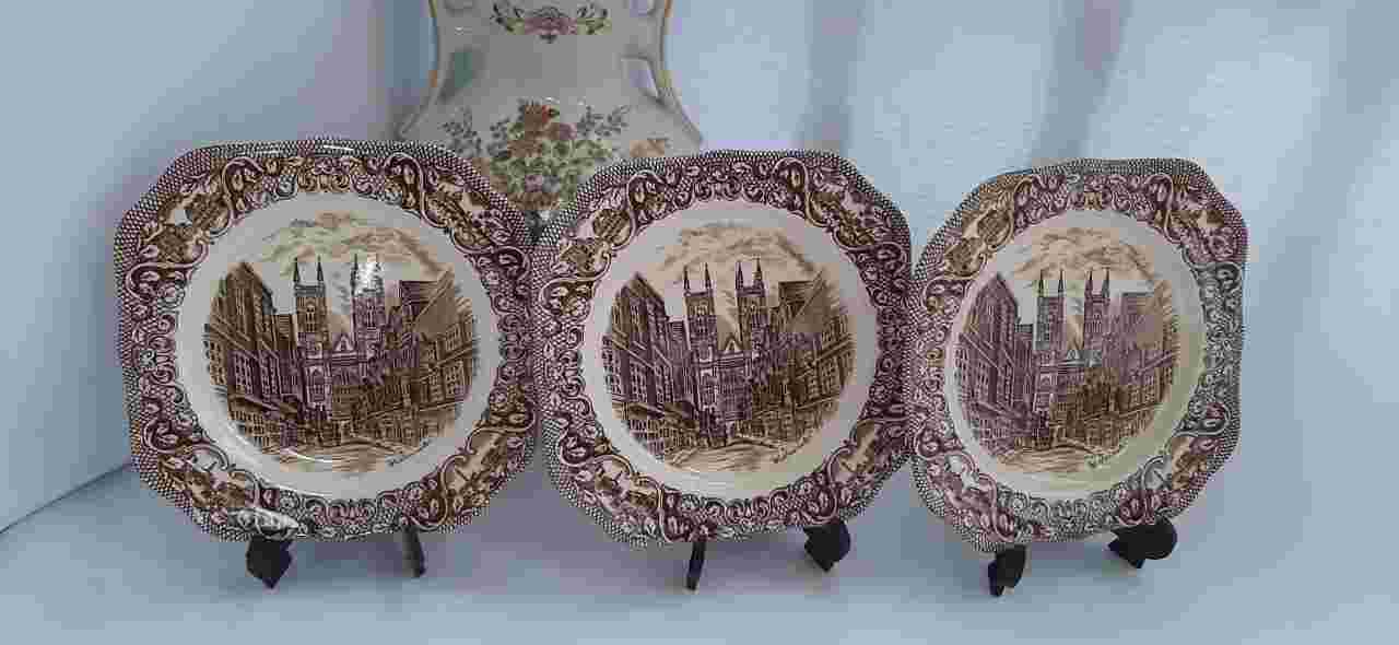 Piring pajangan antik Jhonson brother brown old London 1960, ada 3 pcs, ukuran 15x15cm kondisi mulus terawat baik