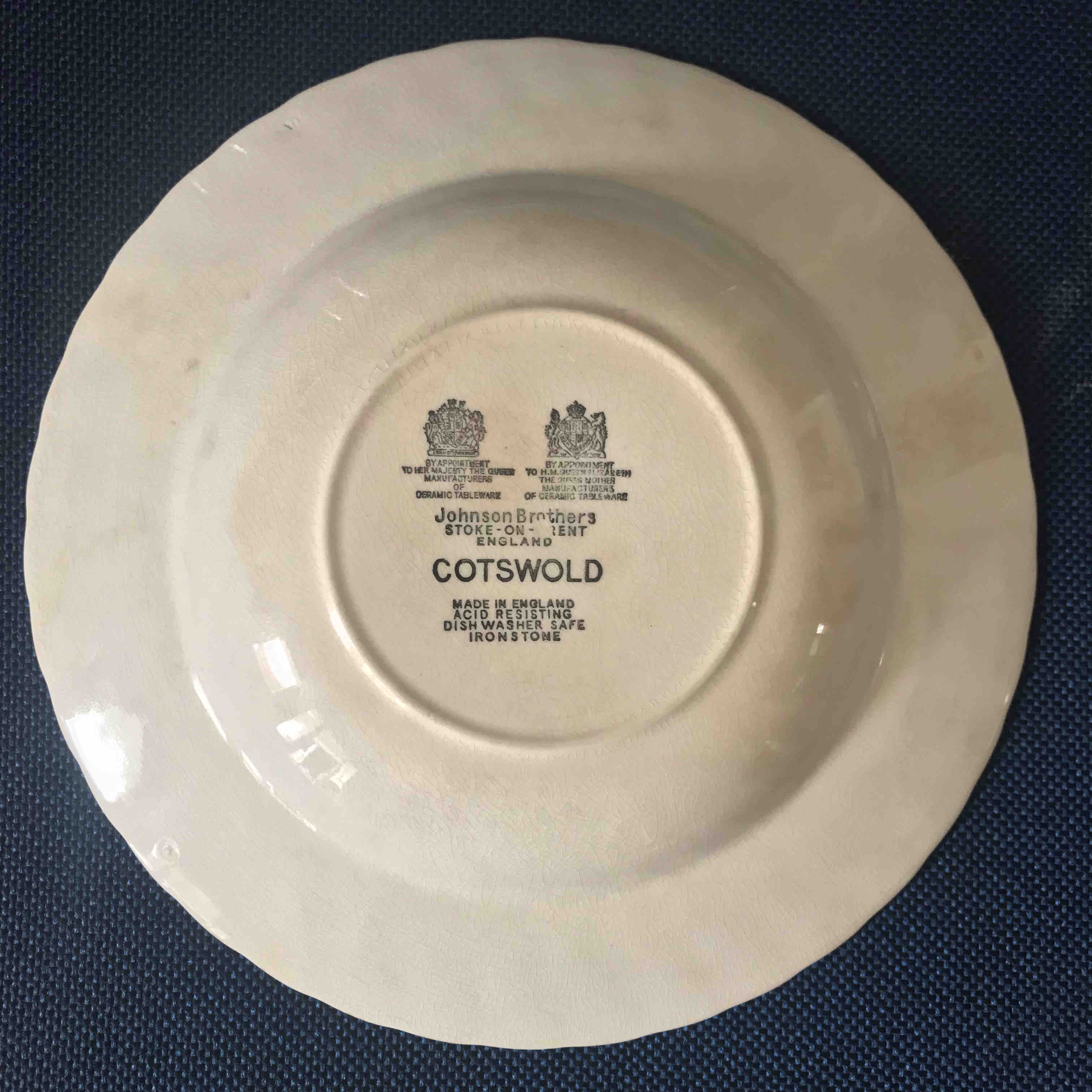 Diameter: 22 cm Kondisi: baik, tidak ada sompel Perhatikan dengan teliti johnson brothers yg kami jual, barang rekayasa hanya menulis cap, merk atau made in menggunakan spidol, tinta atau cat pada keramik yg berharga murah Tulisan atau gambar pada Barang Rekayasa pada umumnya bisa pudar & hilang setelah di bersihkan dng sabun cuci piring extra lemon atau alkohol Harga baru piring JB original polos tanpa gambar berkisar ratusan ribu (info lengkap bisa mengunjungi situs resmi wedgwood) Sebuah situs asing (replacements dot com) menjual duplikat keramik, porselen, stoneware antik, kuno & bermerk dng harga ratusan s/d jutaan rupiah yg banyak di jual situs jual beli online atau toko offline Johnson Brothers, originally a British tableware manufacturer and exporter, was noted for its early introduction of "semi-porcelain" tableware. Some of its designs, "Eternal Beau", "Dawn", "Old Britain Castles" and "Historic America", achieved widespread popularity and are still collected today. Since 1968 it has operated as a part of the Wedgwood Group. (Sumber wikipedia)