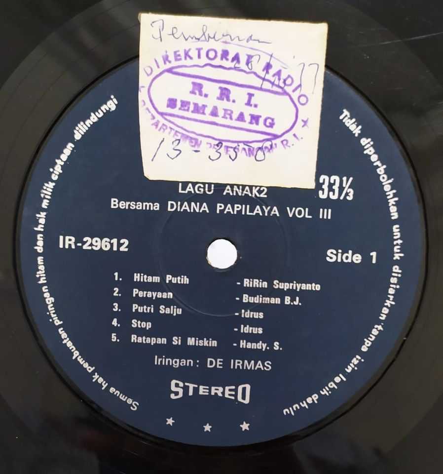 Piringan Hitam Lagu Anak - Anak - Diana Papilaya Vol III