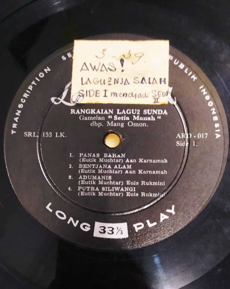 Piringan Hitam Rangkaian Lagu - Lagu Sunda