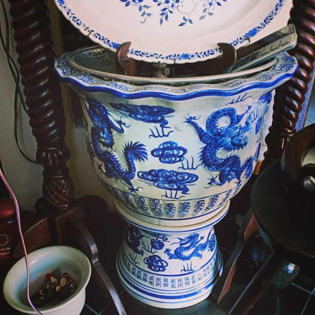 POT BUNGA SETDudukan dan Pot bunga besarMotif naga timbulKondisi utuh Baik1set motif naga