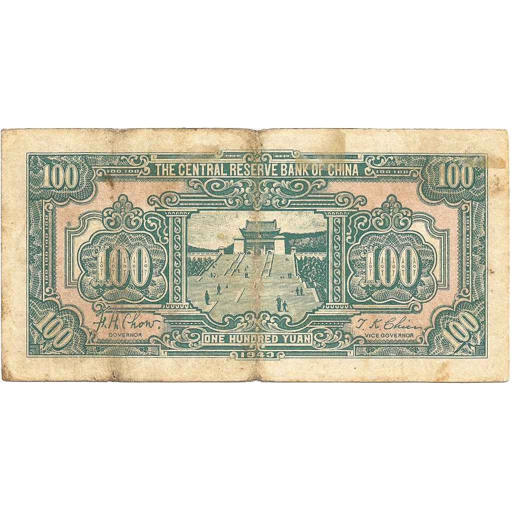 RARE Uang Kuno China 1943 100 Yuan (Central Reserve Bank)