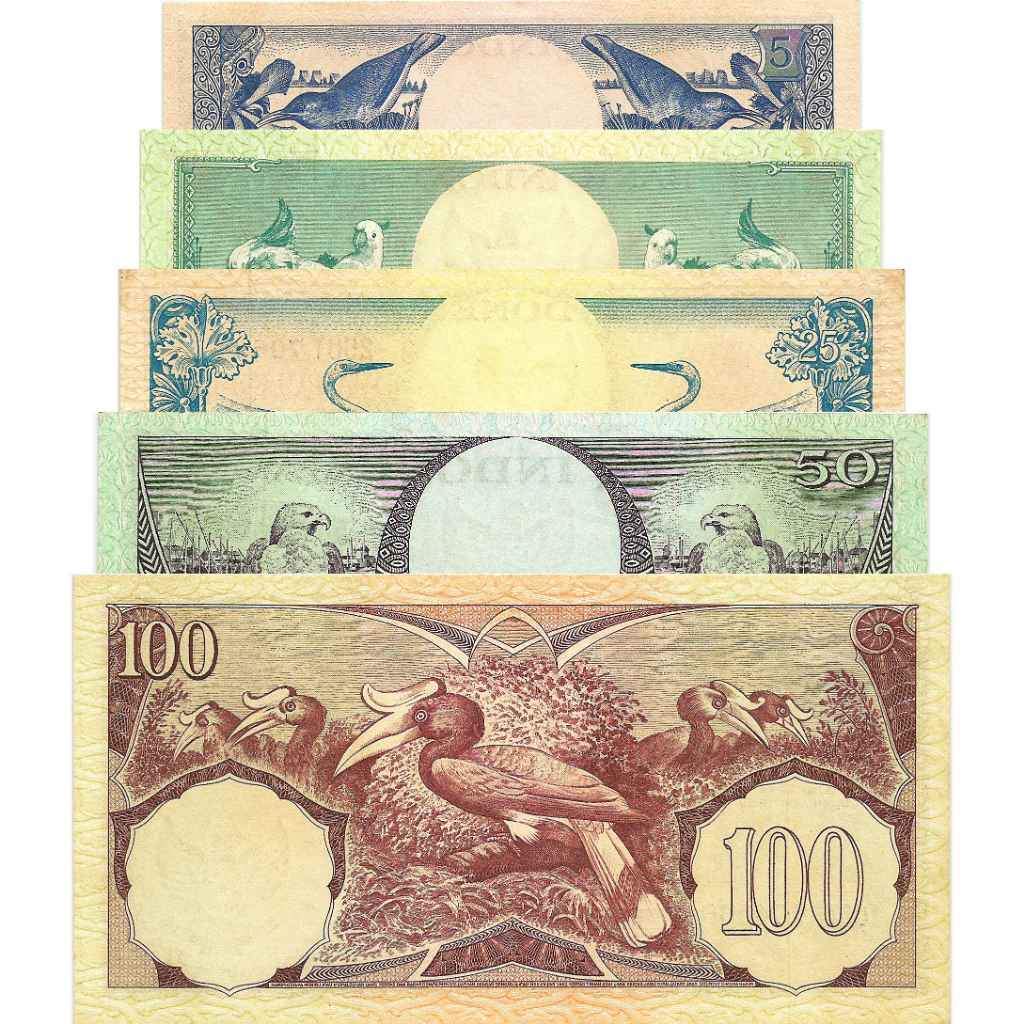 SET Uang Kuno Indonesia 1959 5,10,25,50,100 Rupiah (Seri Bunga) (5Pcs)
