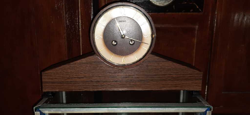 Jam duduk meja merk seiko japan lobang 2 bell ting tong setiap jam dan setengah jam pakai senar 2 suara nyaring mesin putar 1515 pakai baling angkeur jd diposisi apapun tetap hidup hidup 10hari++ box bawah restorasi atas original silahkan buat mempercantik ruangngan tamu,cafe,kamar tdr studio photo shop cantik