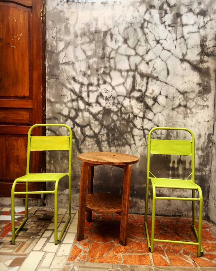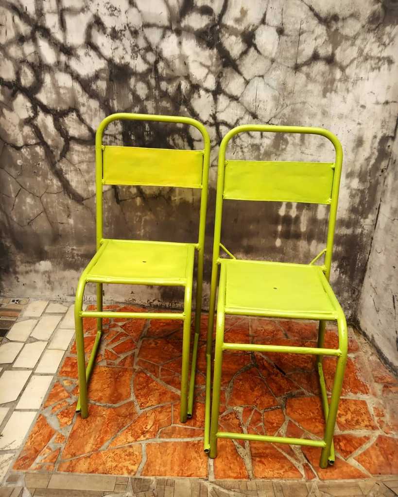Kursi RT lawas dengan besi tebal dan cat ulang.. Meja bulat presisi, cat meja sudah kerokan untuk tampil natural.