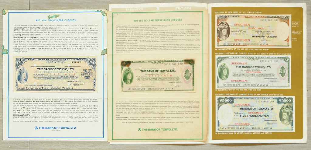 Specimen Bank of Tokyo Travellers Cheques 1983
