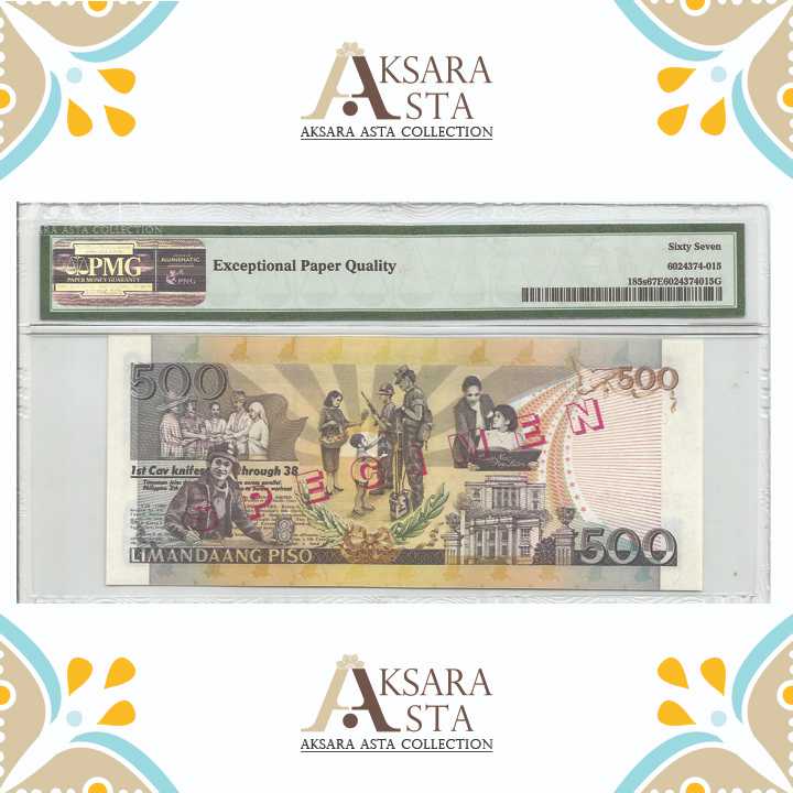 Nama barang : Specimen Uang Philippines 500 Piso Th 1998-2001 PMG 67 EPQ