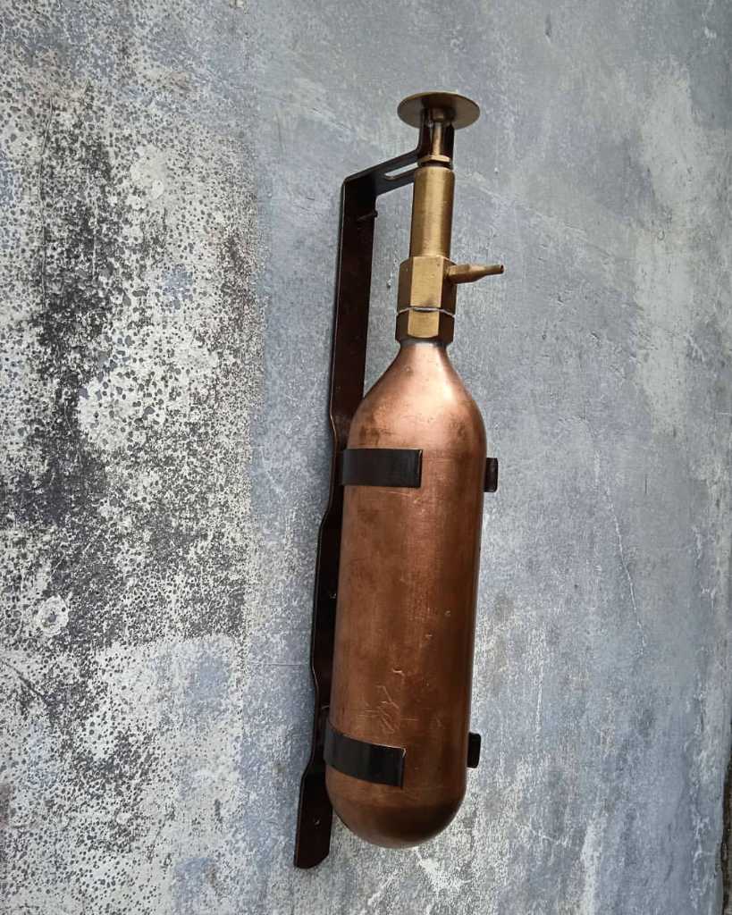 Kondisi Masih utuh, cairan Co2 masih ada, Dan bisa berfungsi. Cuma isi gas dalam tabung sudah tidak ada jadi nggak Ada tekanan. Operasionalnya, sistimnya Di tekan Bagian atas maka cairan Co2 akan keluar.