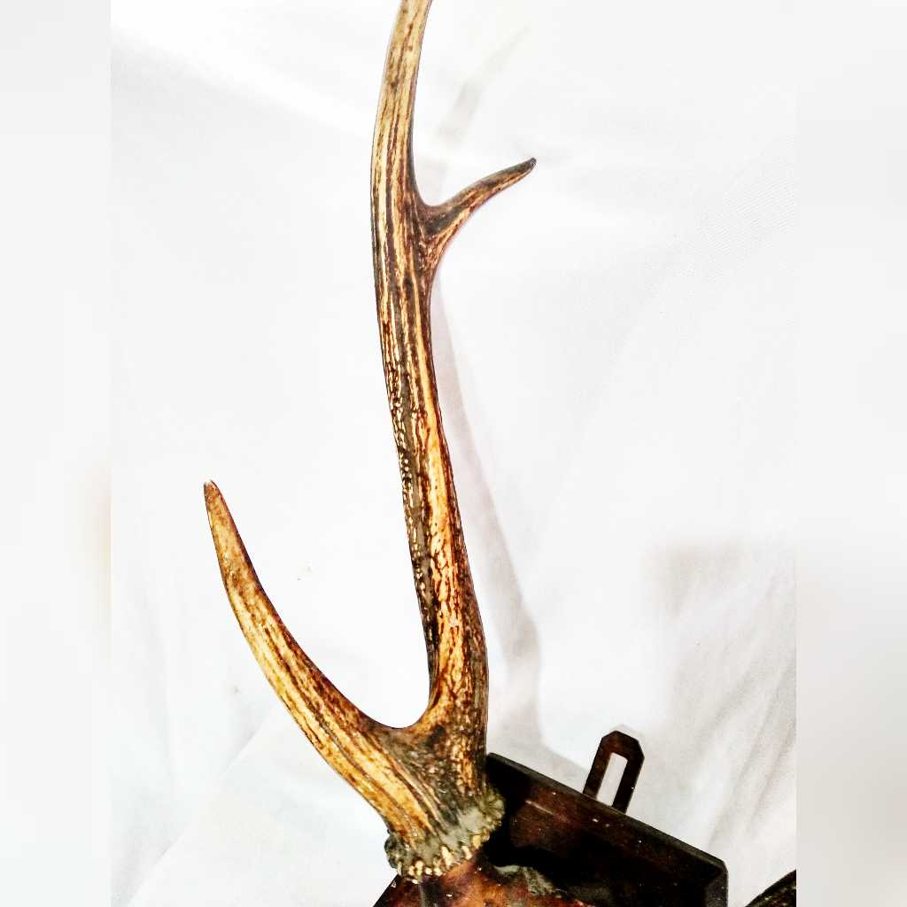 Hiasan Dinding Tanduk Rusa Original dengan Tatakan Kayu Jati