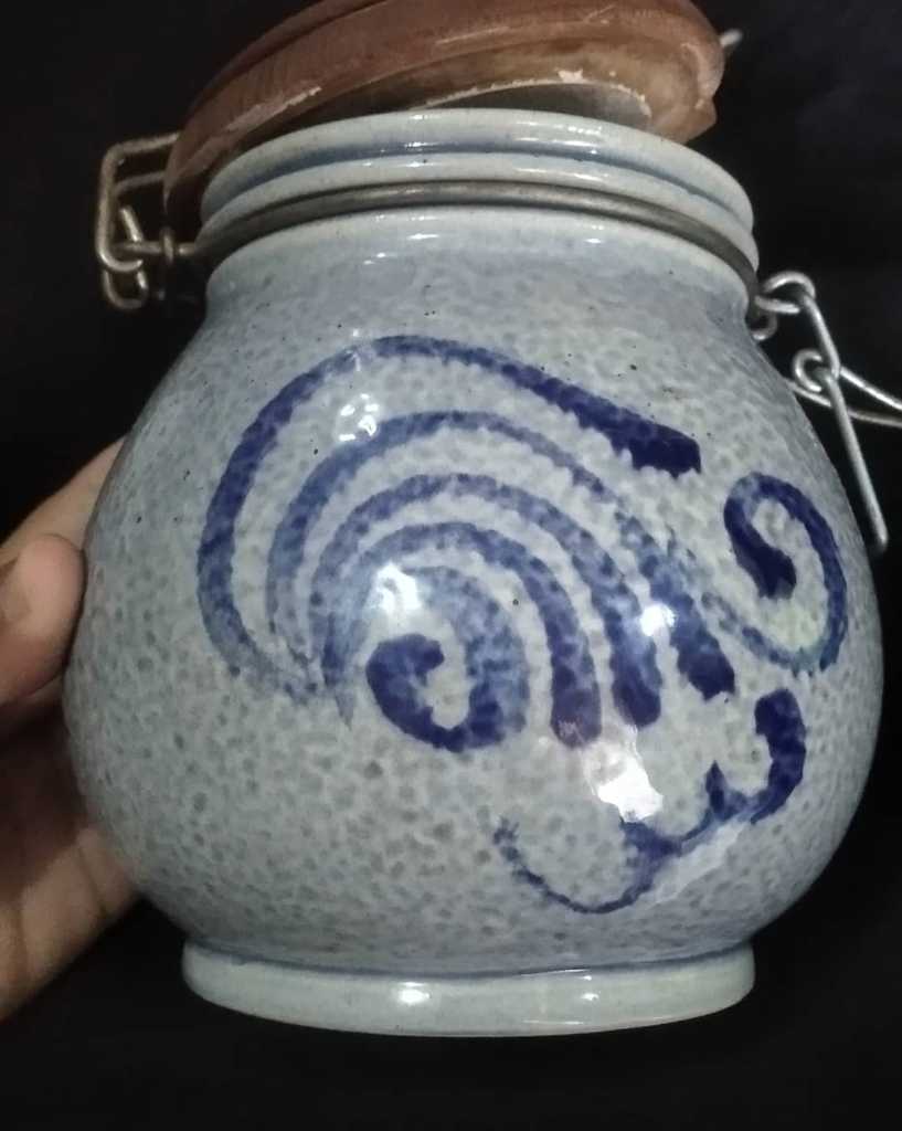 Tempat kopi kondisi tutup seret UK tggi 15 lebar mulut 10 lebar bawah 9 cm diameter perut 14 cm