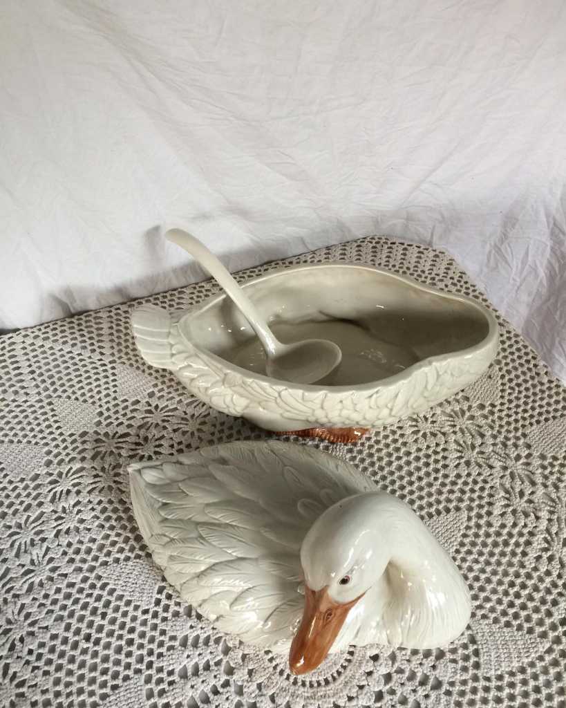 Tempat sup bentuk angsa. Sangat cantik untuk pajangan atau digunakan.
