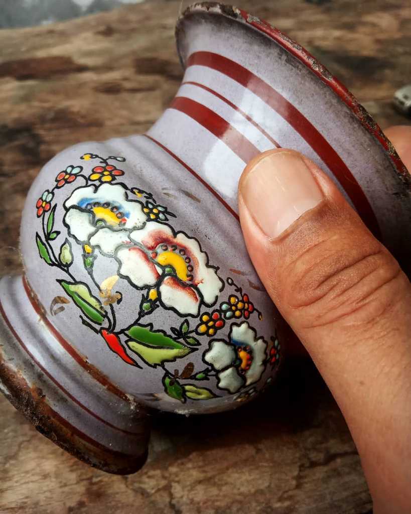 Tempolong mini enamel, lukis timbul..Kondisi fisik masih bagus.Kayak koleksi.., bisa digunakan untuk tempat alat tulis atau bisa dipajang bersama perabot enamel lain.