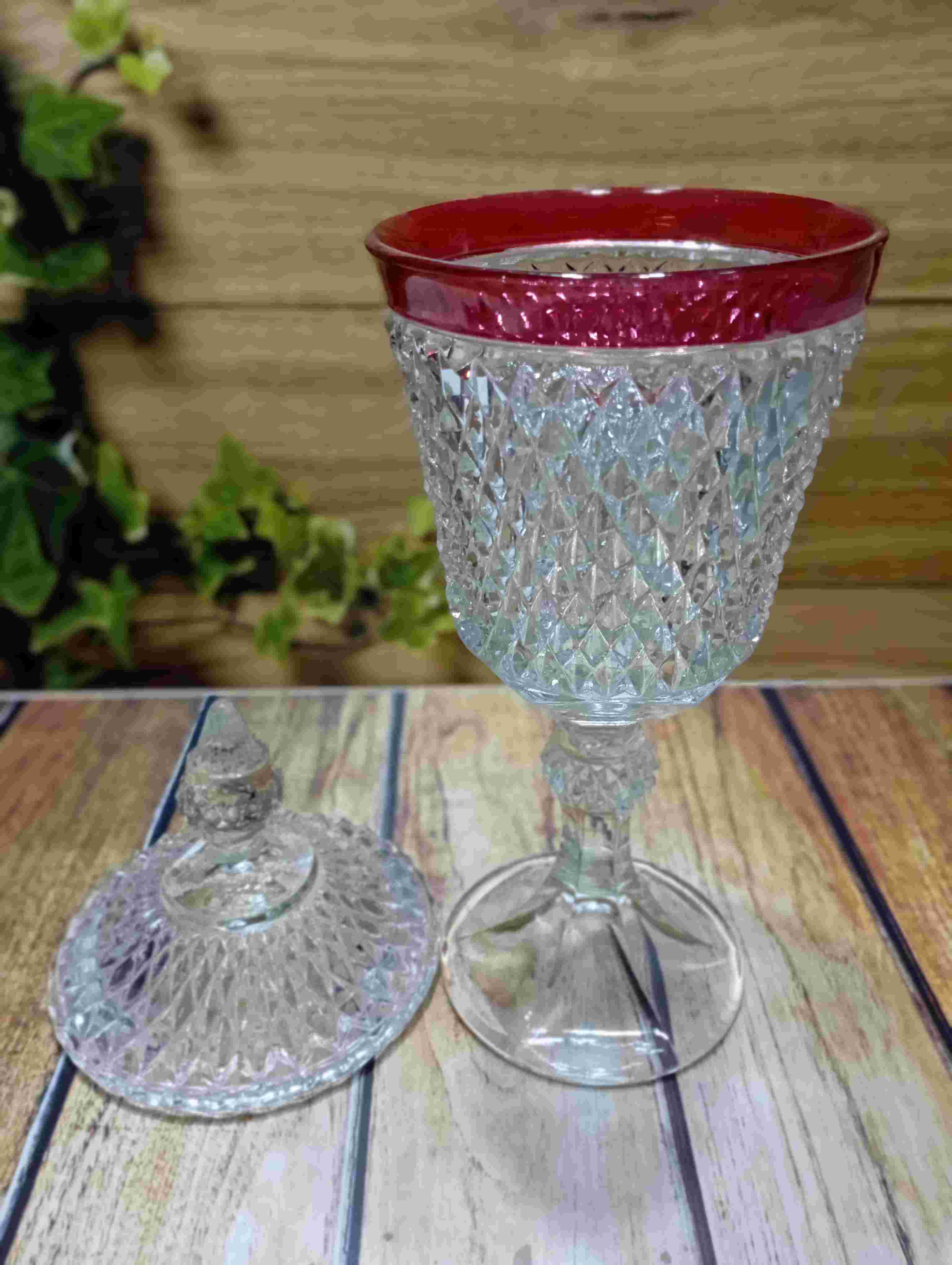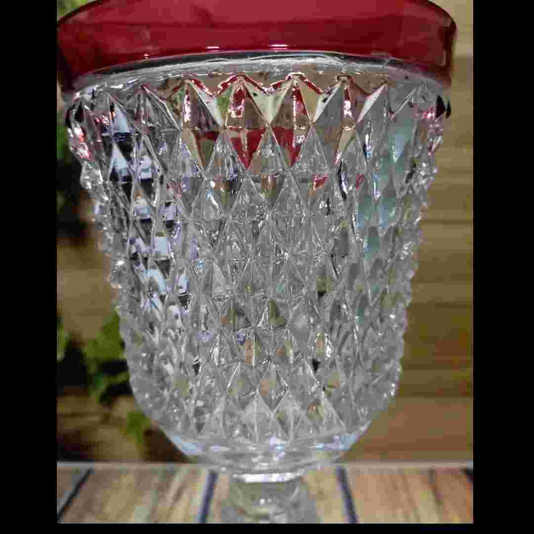 Indiana Glass "Diamond Point". Ruby res band clear crystal.