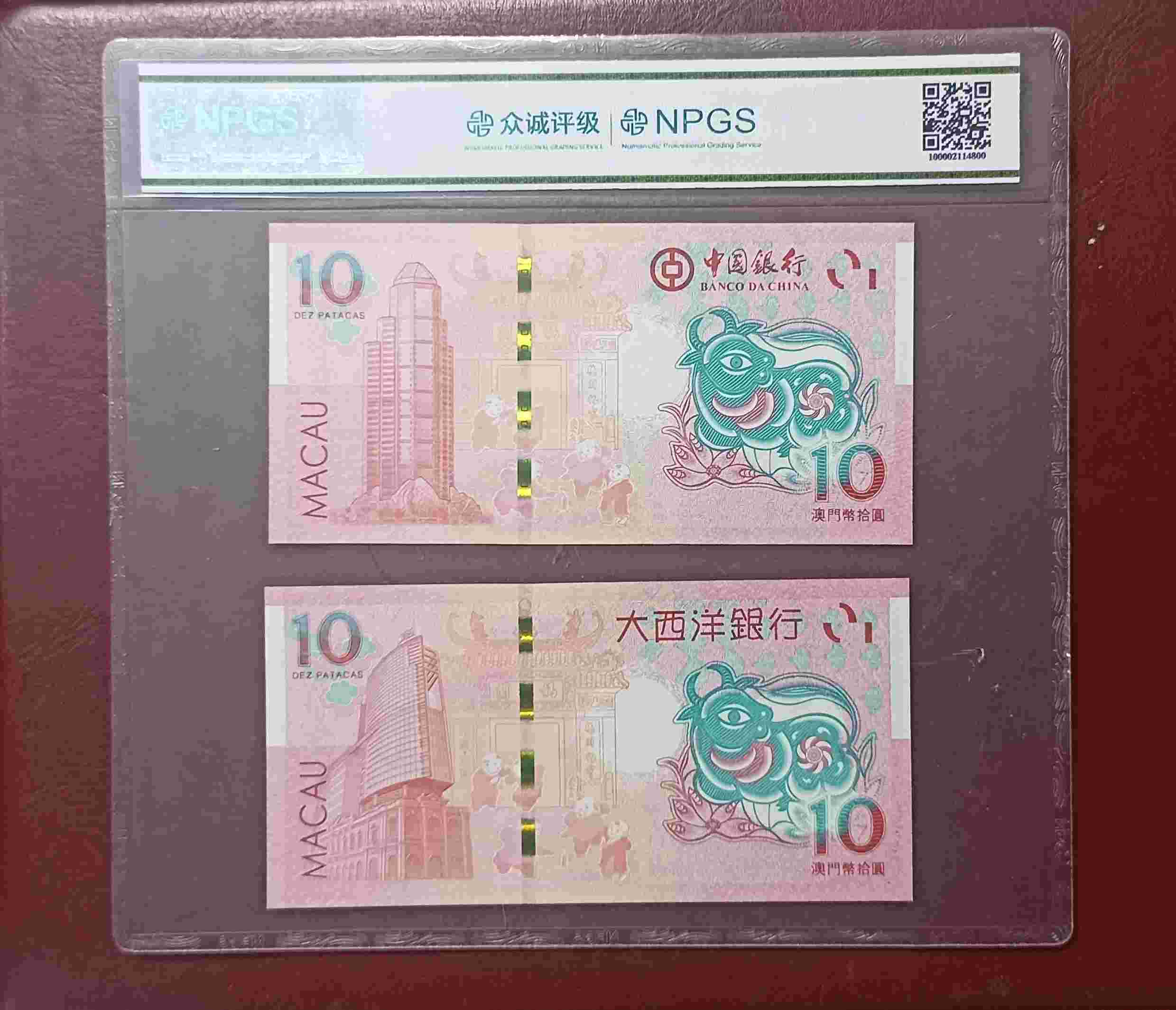 UANG MACAU 10 PATACAS SHIO KERBAU SERTIFIKAT NPGS EPQ 68