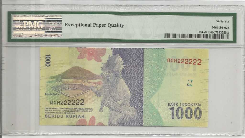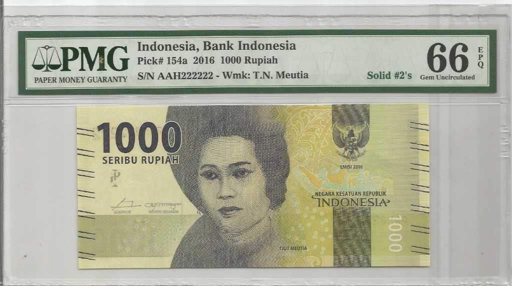 Nama barang : Uang Indonesia 1000 Rupiah Cut Meutia PMG 66 Solid #2's