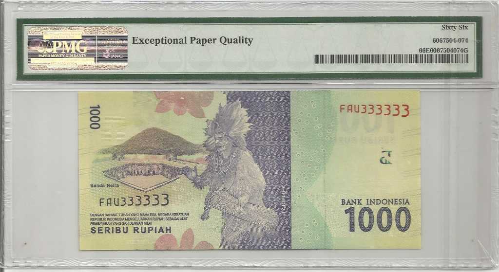 Nama barang : Uang Indonesia 1000 Rupiah Cut Meutia PMG 66 Solid #3's