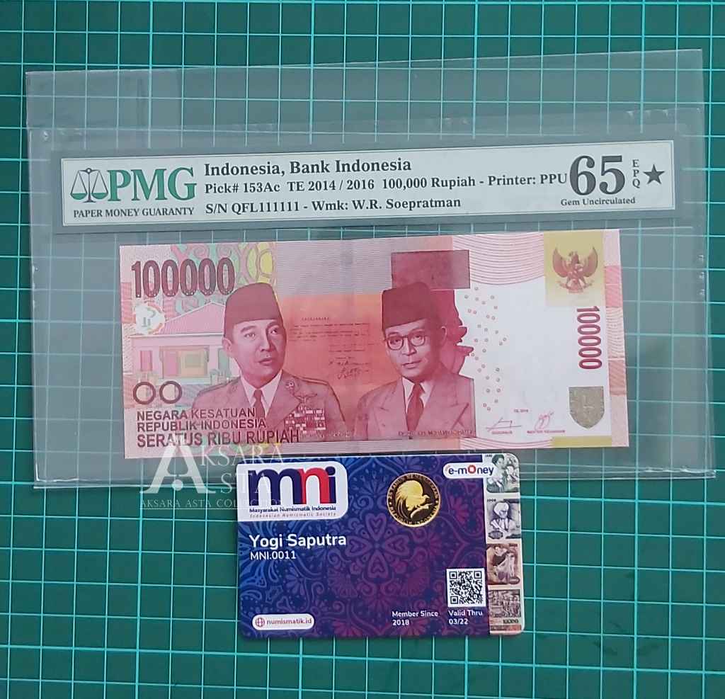 Nama barang : Uang Indonesia Rp 100rb th 2016 PMG 65* EPQ SOLID #1