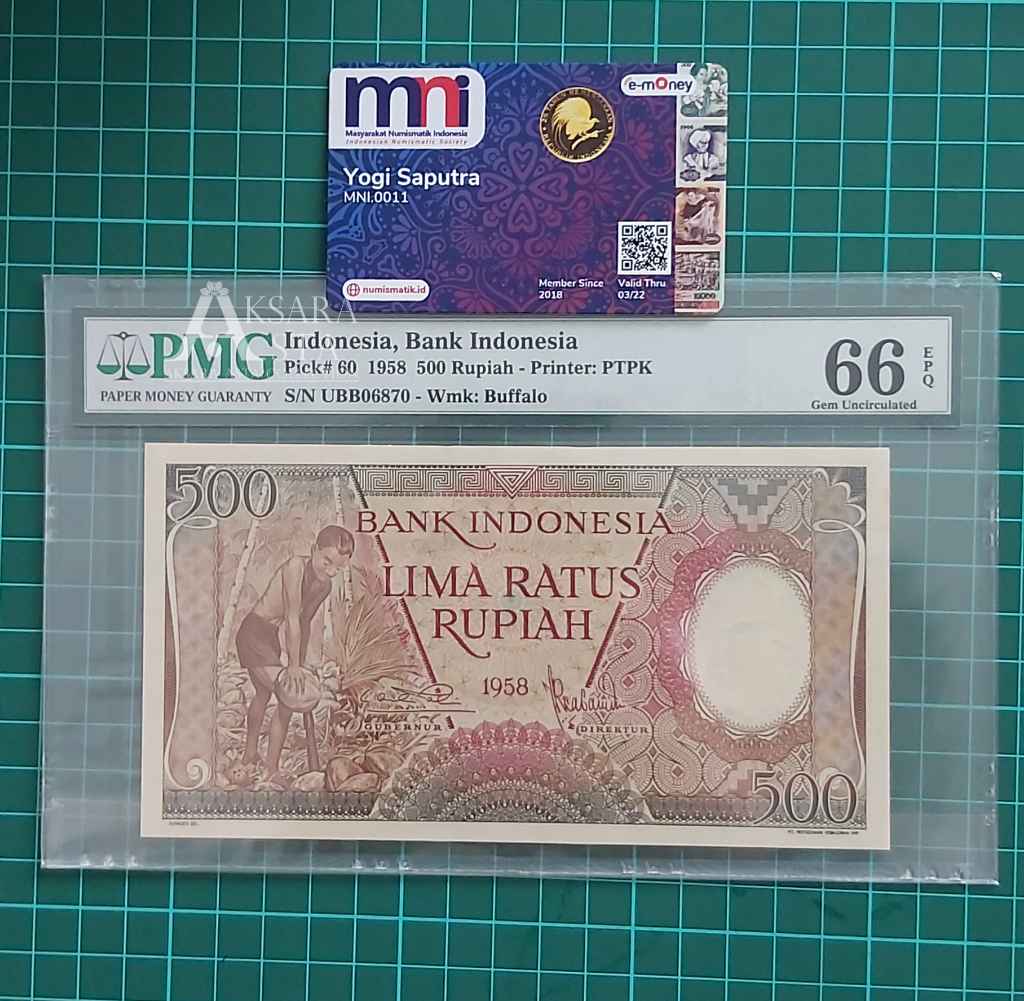 Nama barang : Uang Indonesia Rp 500 th 1958 PMG 66 EPQ