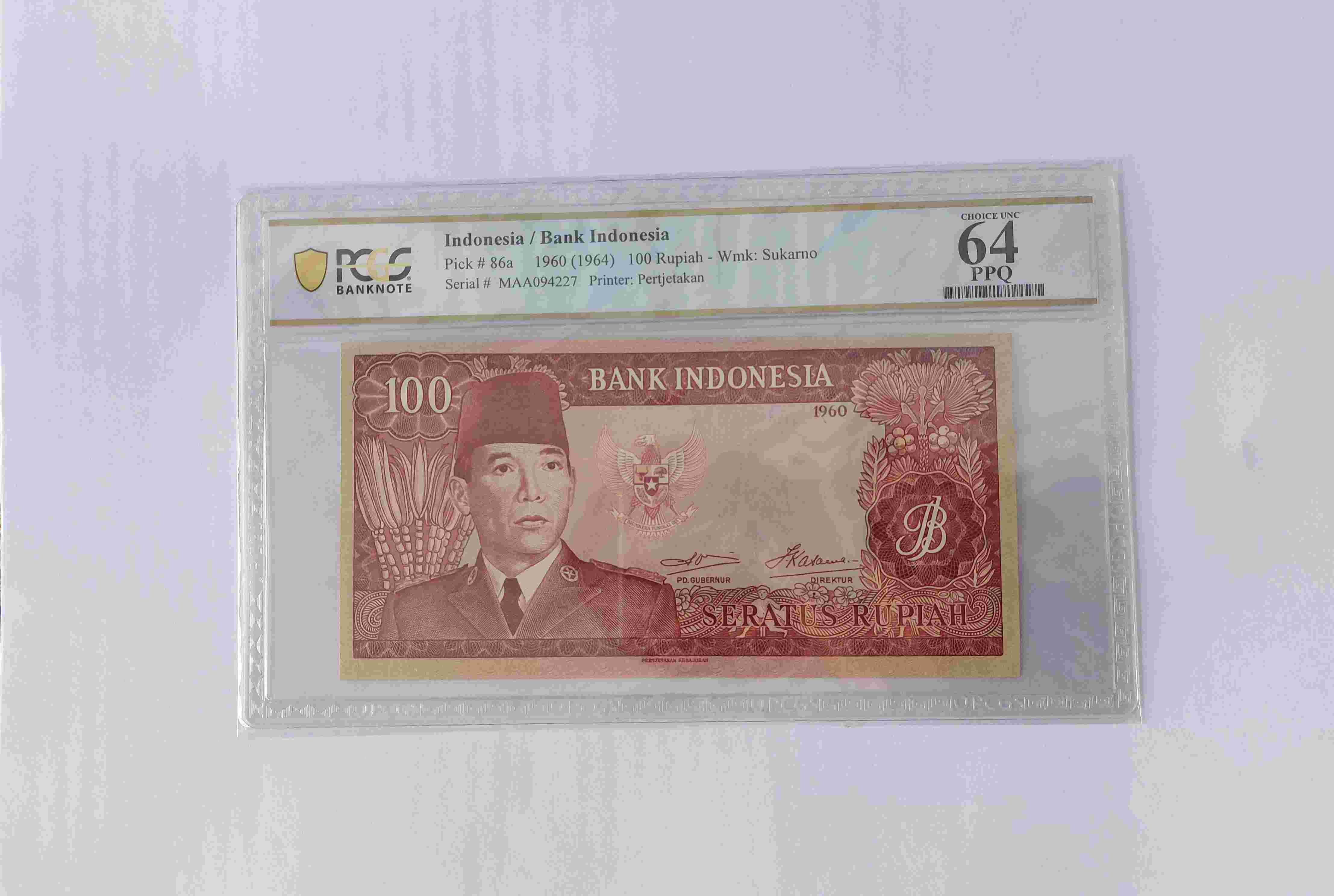 Uang Kuno 100 Rupiah Soekarno 1960 (1964) PCGS 64 PPQ